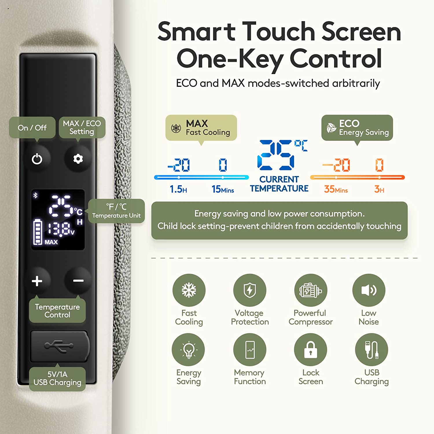 - APP&MANUAL CONTROL: Smart portable car freezer can use wireless connection and operate the car refrigerator in your mobile APP.(it can only connect 1 mobile phone, do not support the connection of two or more mobile phones) It also has a USB port for phone charging. Intelligent temperature control function to meet the required temperature of various ingredients. (It is recommended to refrigerate the food or drink before putting it in the refrigerator for better effect)