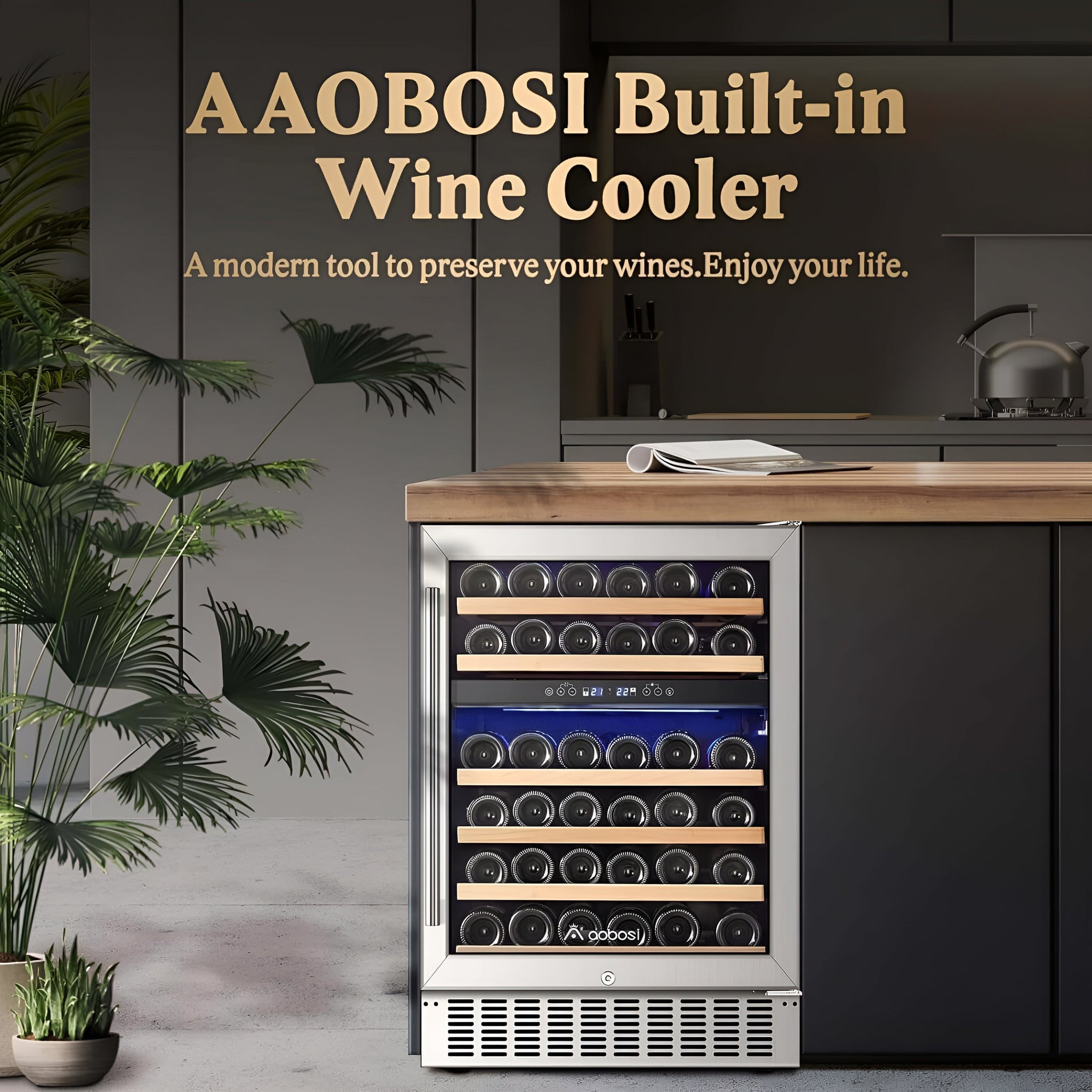 AOBOSI 24 Inch Dual Zone Wine Cooler Holds 46 Bottles - JC-145B