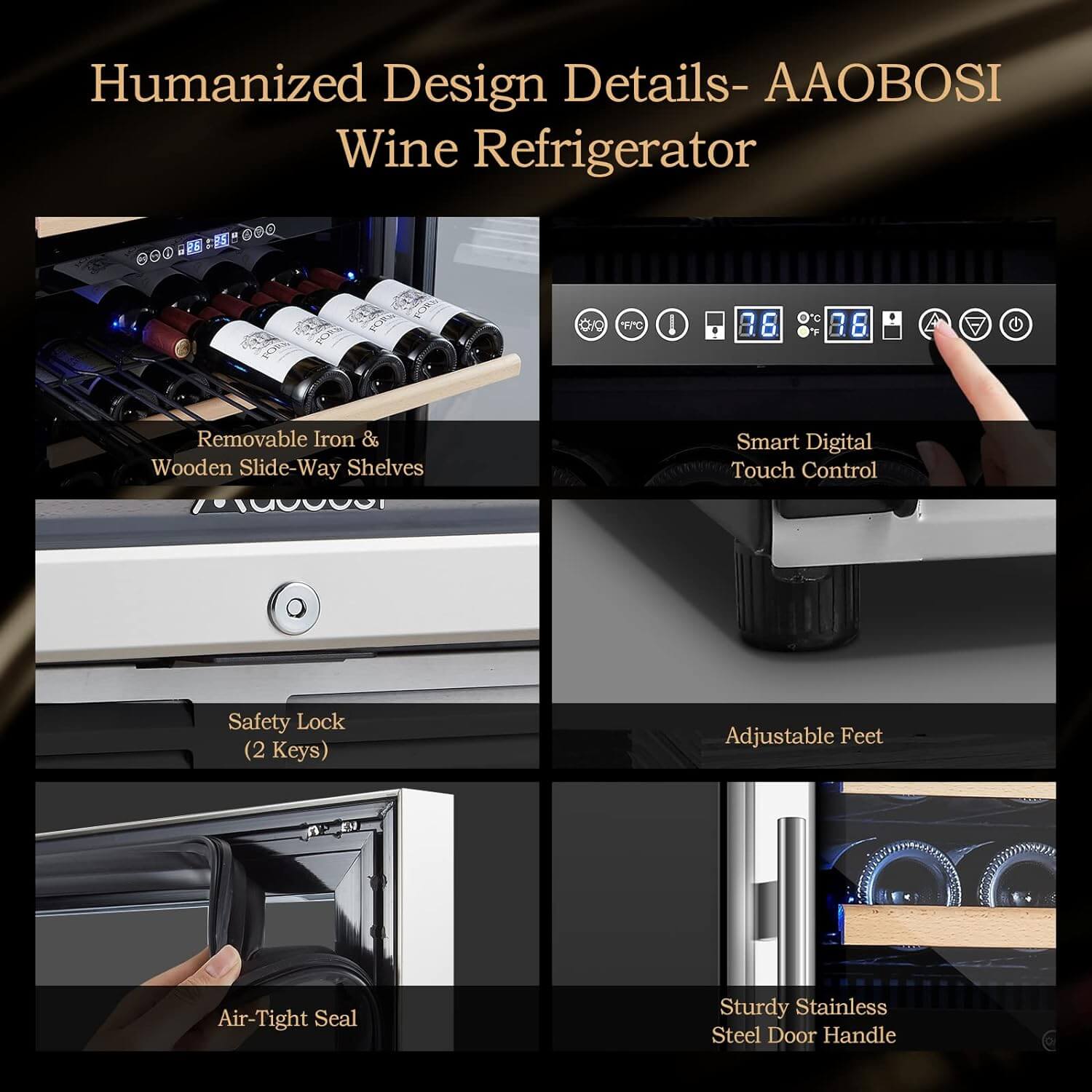AOBOSI 24 inch Wine Cooler 154 Bottles Capacity Dual Zone - YC-408B