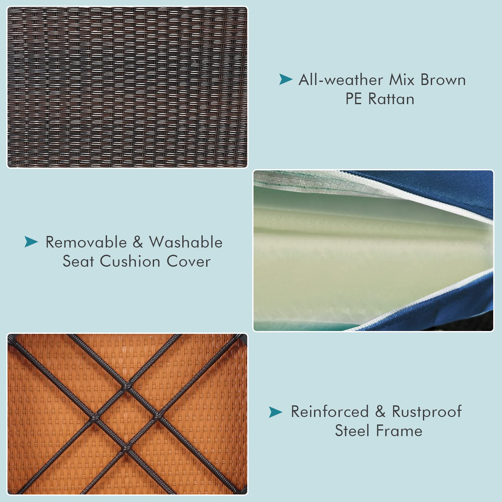 Material: PE Rattan, Acacia Wood, Steel, Polyester, Sponge
