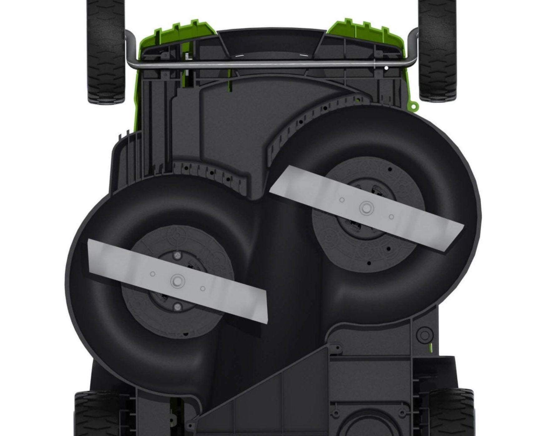 Q: What is the Greenworks 40V 20" Cordless Battery Dual Blade Push Lawn Mower?