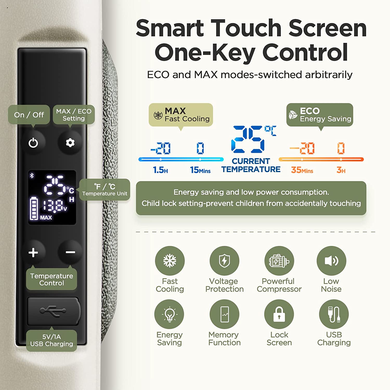 - APP&MANUAL CONTROL: Smart portable car freezer can use wireless connection ​and operate the car refrigerator in your mobile APP.(it can only connect 1 mobile phone, do not support the connection of two or more mobile phones) It also has a USB port for phone charging. Intelligent temperature control function to meet the required temperature of various ingredients. (It is recommended to refrigerate the food or drink before putting it in the refrigerator for better effect)
