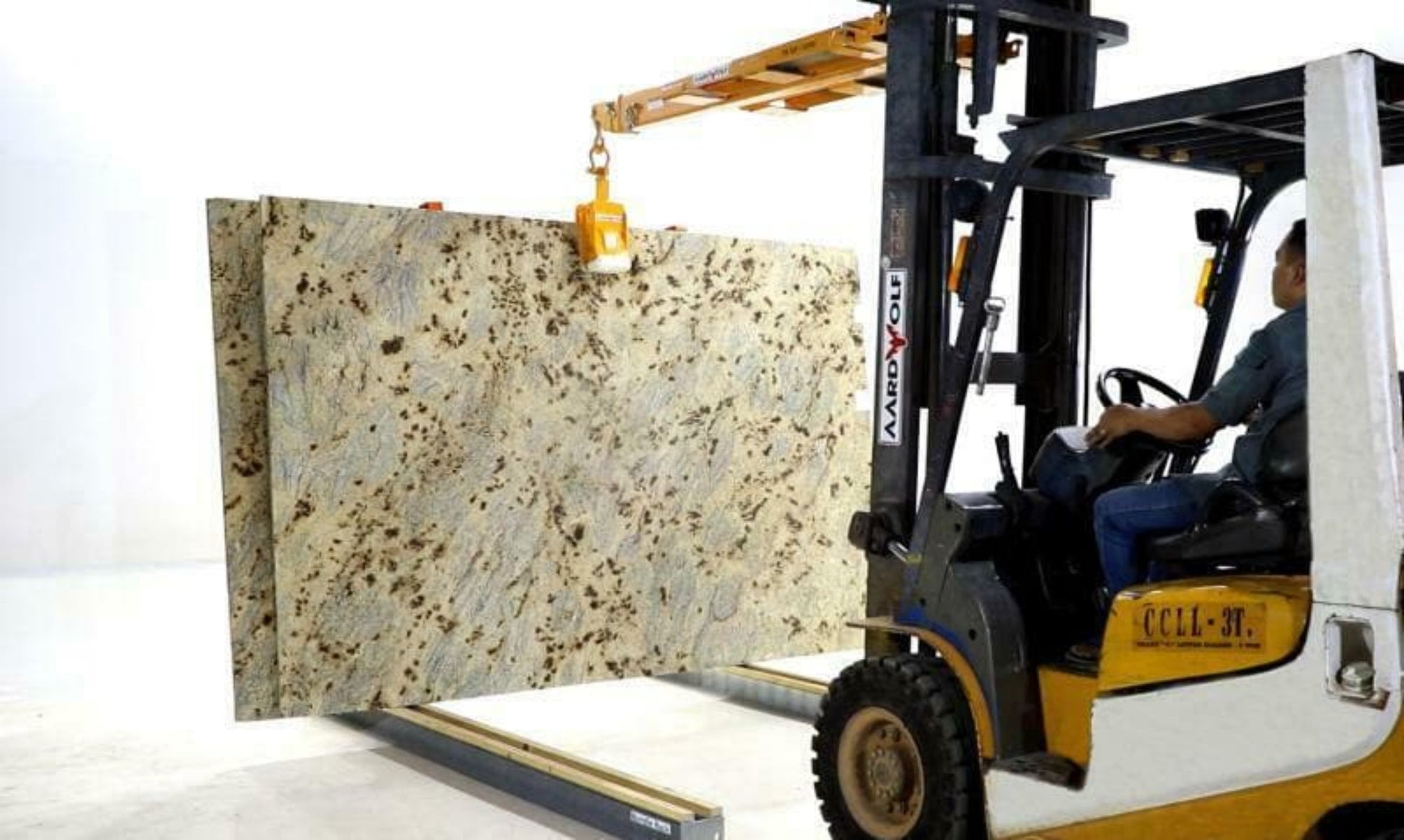A: The AL50A-R is designed for safely lifting and transporting stone slabs such as granite, marble, and quartz in fabrication shops, warehouses, and construction sites.