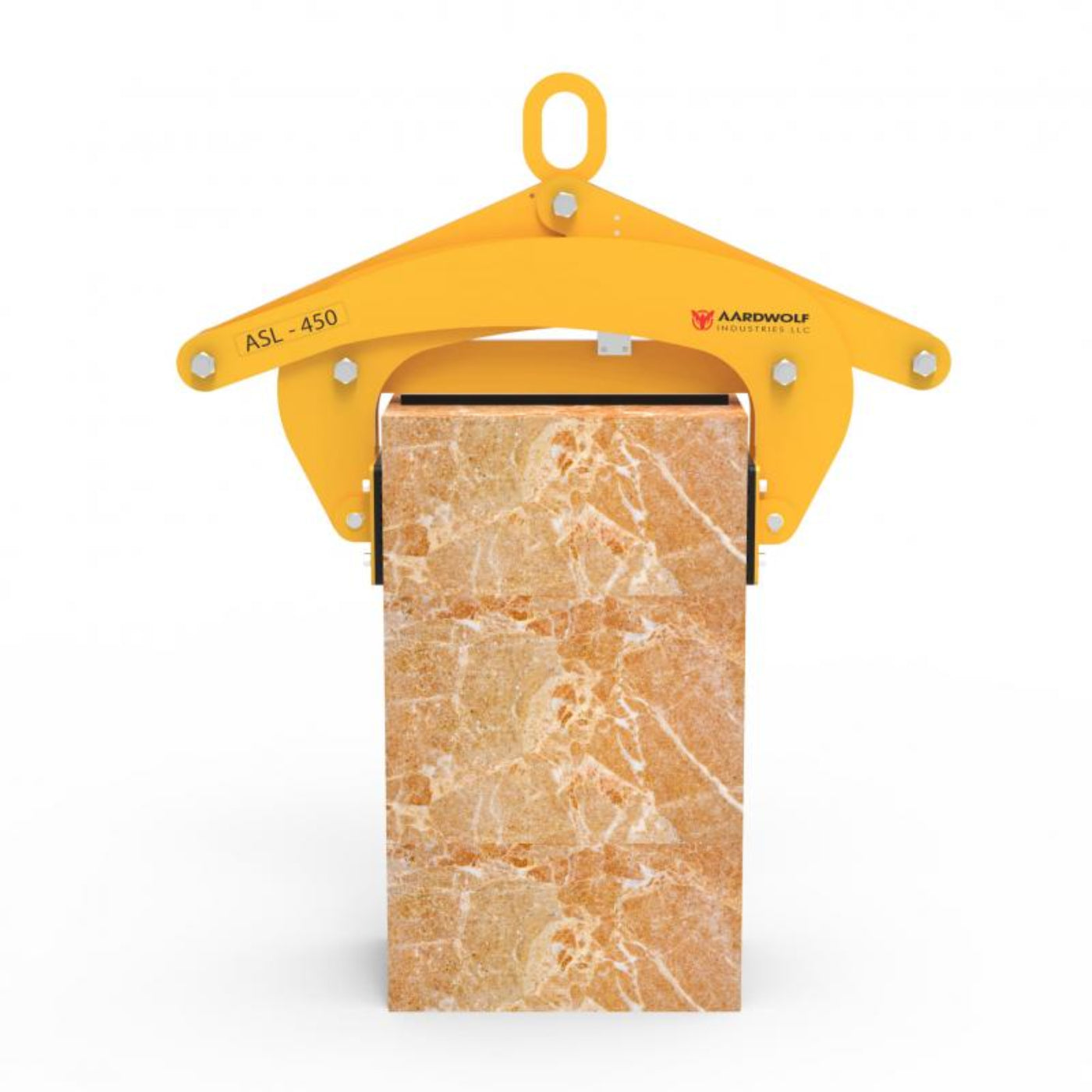 Scissor Lifting Clamp equipped for lifting heavy objects such as curbs, median walls, concrete barriers, tombstones, and stone slabs. Grip Range 12-18 inchesThe Aardwolf Scissor Clamp Lifter is equipped with a rubber contact pad for the safe handling of materials. By means of a gravity controlled locking latch, the clamp automatically grips and releases the materials. Suitable for lifting marble and granite slabs, tomb stones, concrete barriers, curbs (Kerbs) and median walls.