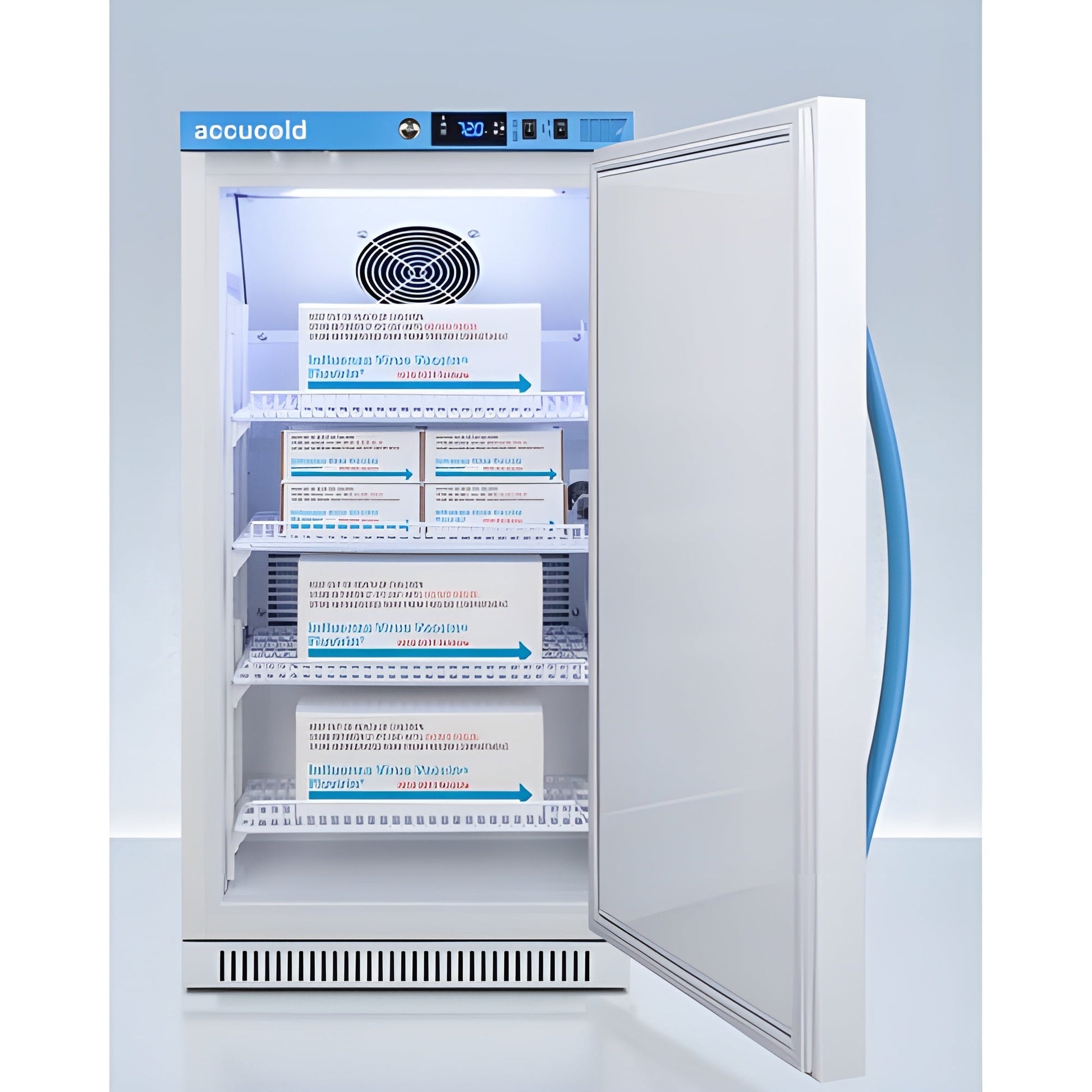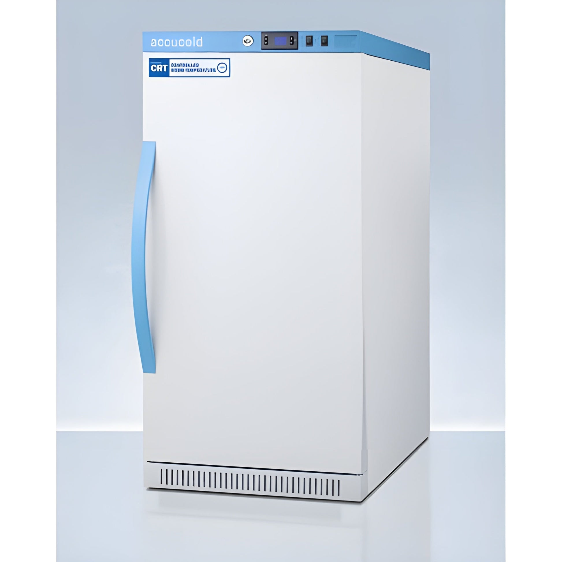 Performance Series Controlled Room Temperature CabinetThe ARS32PVBIADA-CRT is a 2.83 cu. ft. upright storage unit designed for stable room temperature medication storage. Pre-set to 72ºF, it offers an adjustable range from 68º to 77ºF and fits under ADA-compliant counters at just under 32” high. An external microprocessor controller reduces door openings, ensuring minimal temperature fluctuations. The buffered temperature probe in a glycol-filled bottle closely mimics stored product temperature for superior accuracy. Additional safety features include an audible and visual temperature alarm, power failure alert, and a self-closing, lockable door with a user-reversible swing. The interior boasts adjustable plastic-coated wire shelves, LED lighting, and durable powder-coated metal construction for longevity. Optimized forced air cooling maintains temperature uniformity, while a factory-installed antimicrobial handle enhances hygiene. Equipped with a hospital-grade power cord, this energy-efficient unit uses hydrocarbon refrigerant for reliable performance, even in ambient conditions from 68ºF to 86ºF.