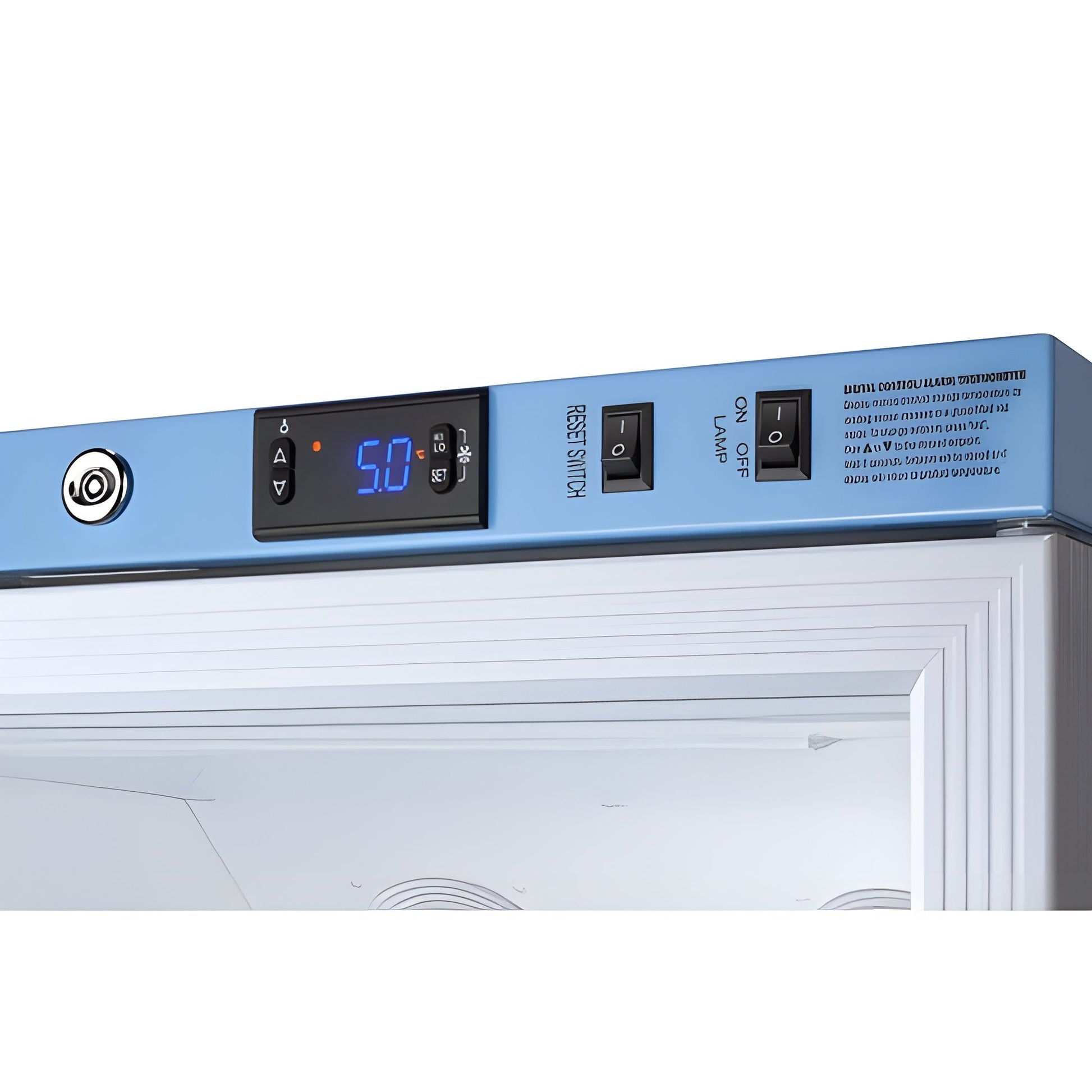 The Pharma-Vac Performance Series offers a space-saving solution for vaccine storage with a slim, stackable design. The ARG31PVBIADA-AFZ2PVBIADASTACKLHD combines a 2.83 cu. ft. auto defrost refrigerator with a 2.47 cu. ft. manual defrost freezer, joined by Accucold's StackRack. Both units feature a microprocessor temperature controller for precise regulation, with a glycol-encased probe ensuring accurate readings. Audible and visual alarms alert users to temperature deviations, power failures, and sensor issues. The refrigerator's adjustable cycle defrost system prevents temperature spikes, while optimized forced air cooling enhances stability. The freezer operates with static manual defrost and includes four adjustable wire shelves. Additional features include factory-installed antimicrobial handles, remote alarm contacts, and a 1/2" probe port for external monitoring. Each unit is powered by a hospital-grade cord with a 'green dot' plug for safety. This combination is ideal for medical environments requiring stringent temperature control and secure vaccine storage.