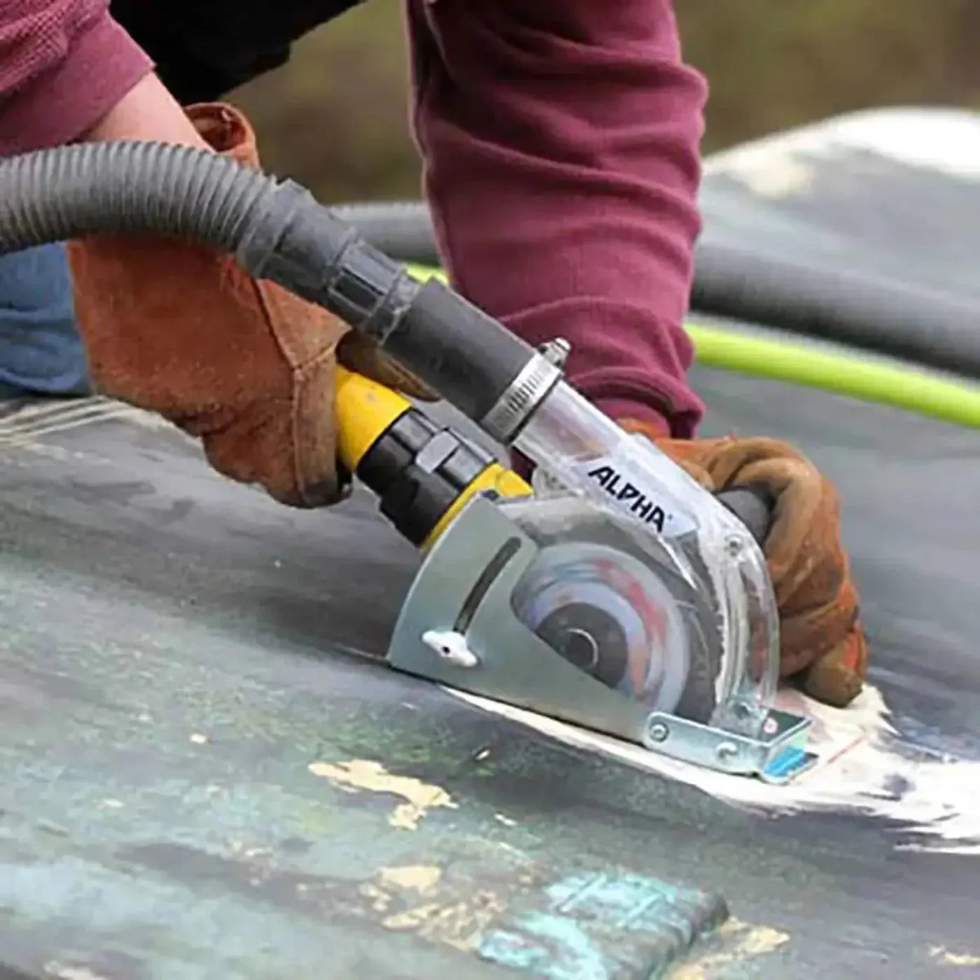 Alpha is pleased to introduce the PSG-125 Diamond Cutting Kit. This system is recommended for virtually dust-free masonry cutting applications using a diamond blade. It fits not only standard cutting blades but also wide kerf blades for tuck-pointing, crack chasing, and grout removal. Also, great for curve-cutting blades for sink-hole cut-out applications. An optional water feed system is available to keep the dust to a minimum.