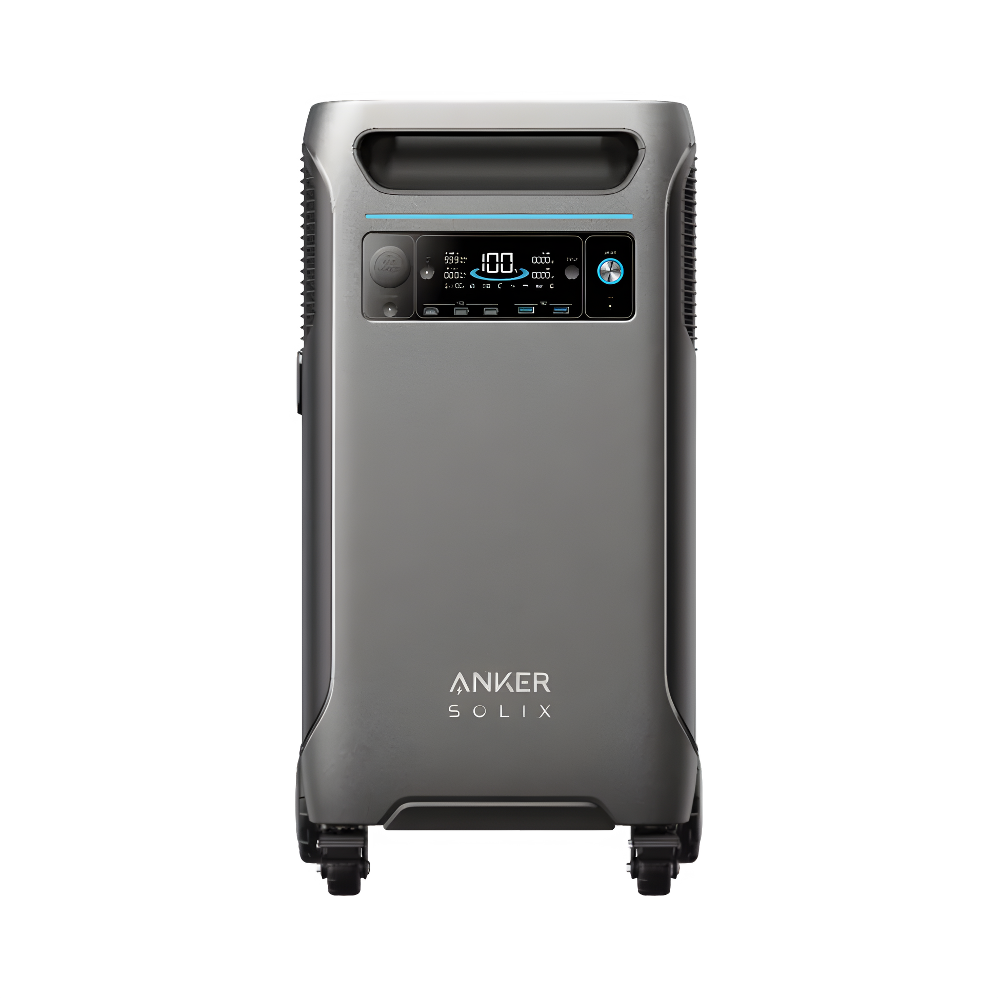 The Anker SOLIX F3800 is your ultimate whole-home backup power solution, seamlessly integrating into your home power system with an expandable capacity up to 26.9kWH with expansion batteries (sold separately). Meet all the needs of high-voltage and regular appliances with the F3800's dual voltage 120V/240V. Bring massive power anywhere you go, this portable power station rolls easily thanks to industrial-grade wheels and a pull-out handle for smooth maneuvering.