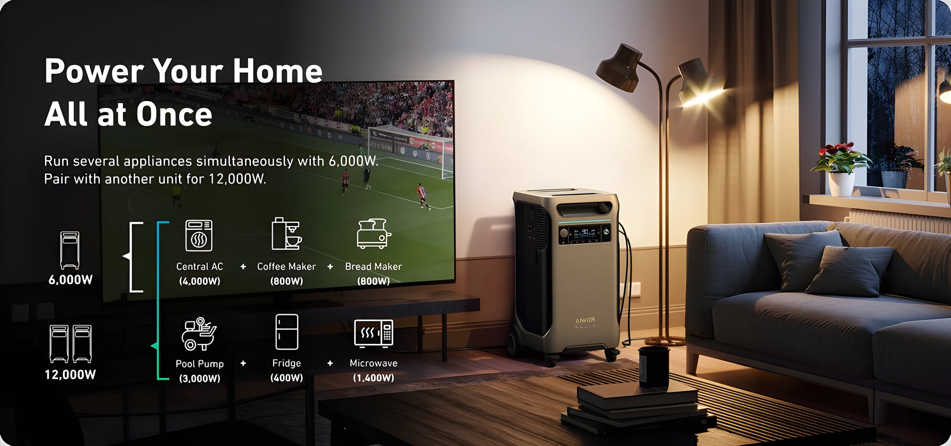 A: A high-capacity 3840Wh, 6000W portable power station designed for home backup, off-grid power, and emergency situations.