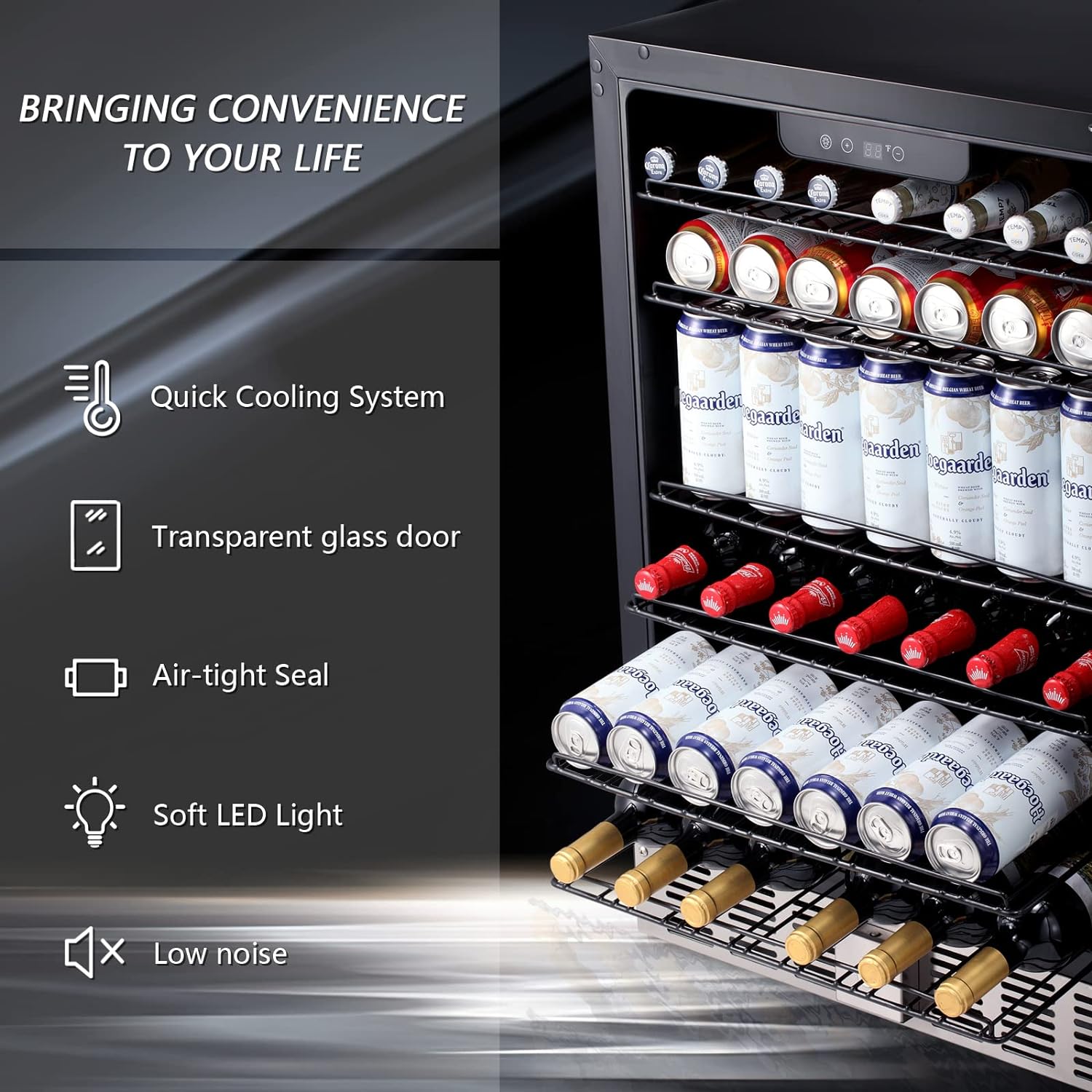 Powerful Cooling System â Maintains consistent temperatures to keep drinks perfectly chilled.