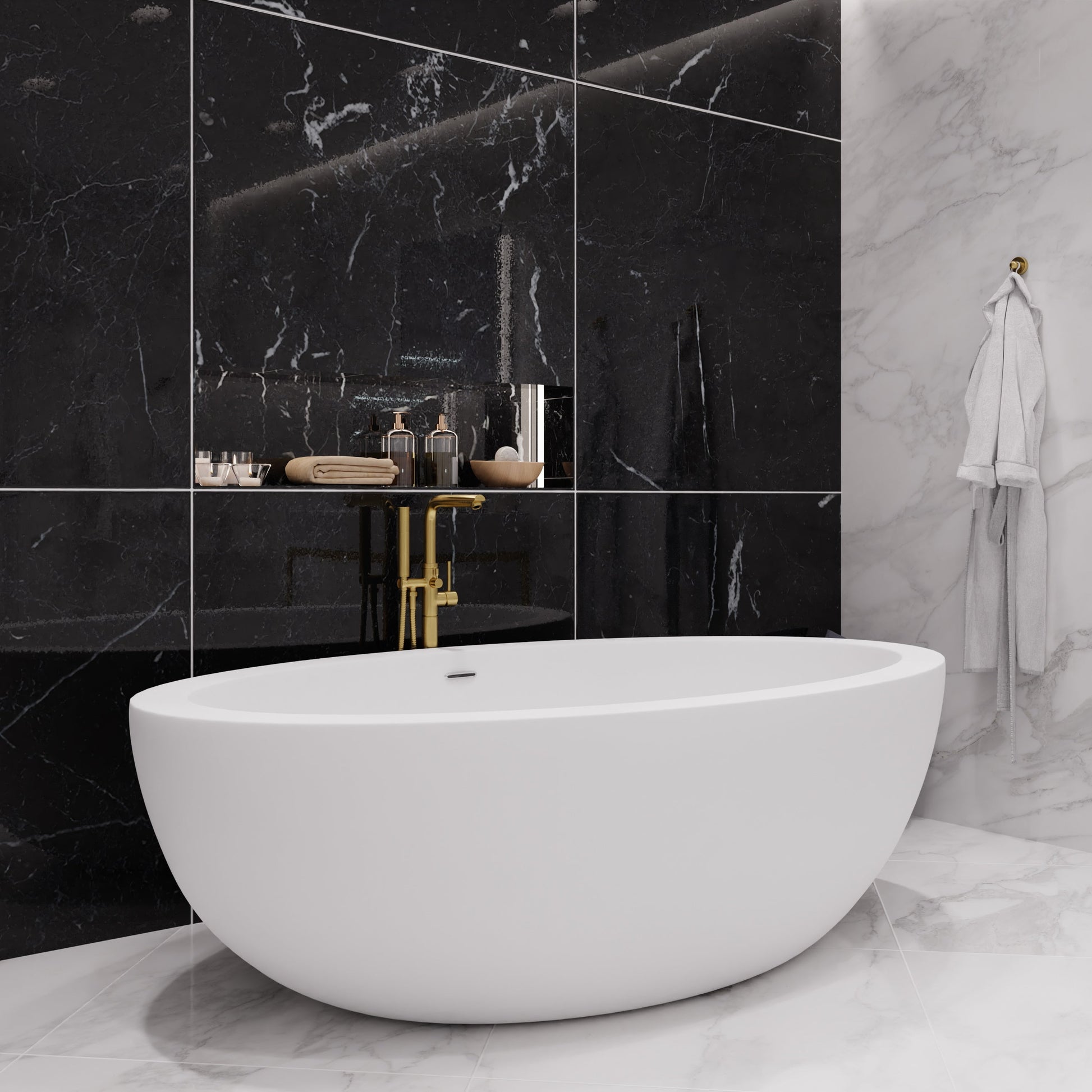A: The contemporary, minimalist design with a matte finish complements modern and luxurious bathroom interiors.