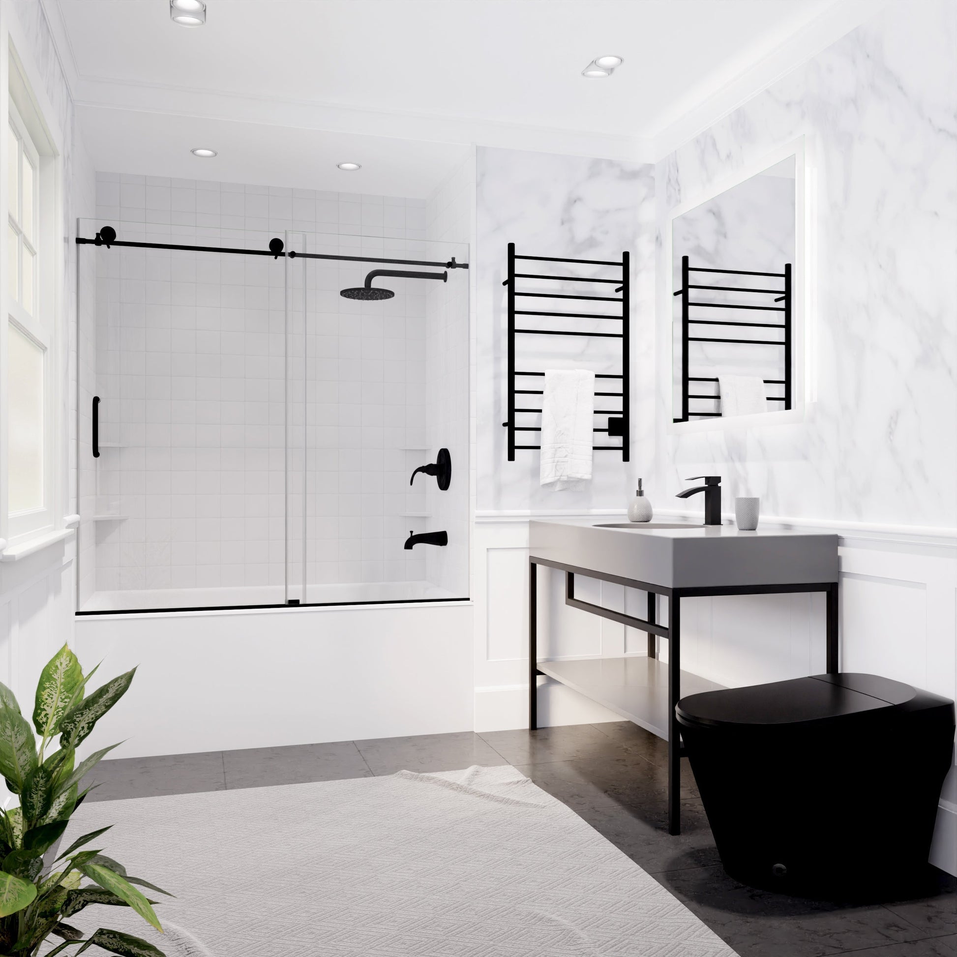 Spacious 60 in. x 62 in. Size โ Provides ample space for a comfortable, open feel in your bathroom.