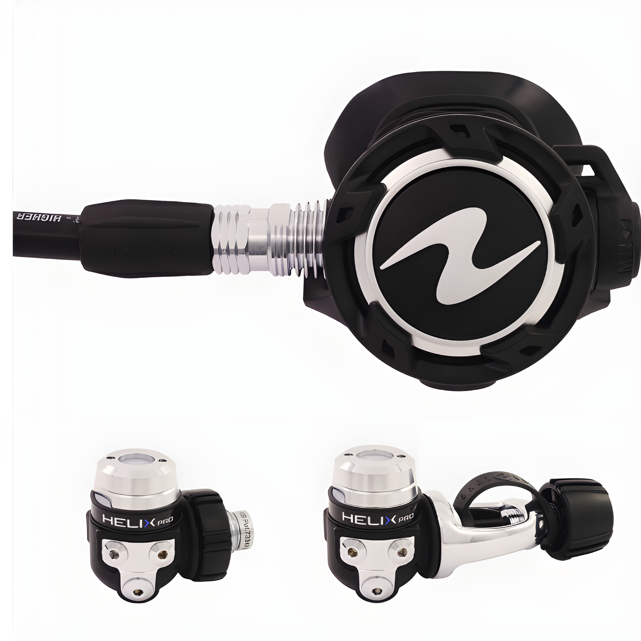 A: The Helix Pro offers smooth and consistent airflow thanks to its balanced first stage, along with an ergonomic second stage for comfort and reduced jaw fatigue during long dives.