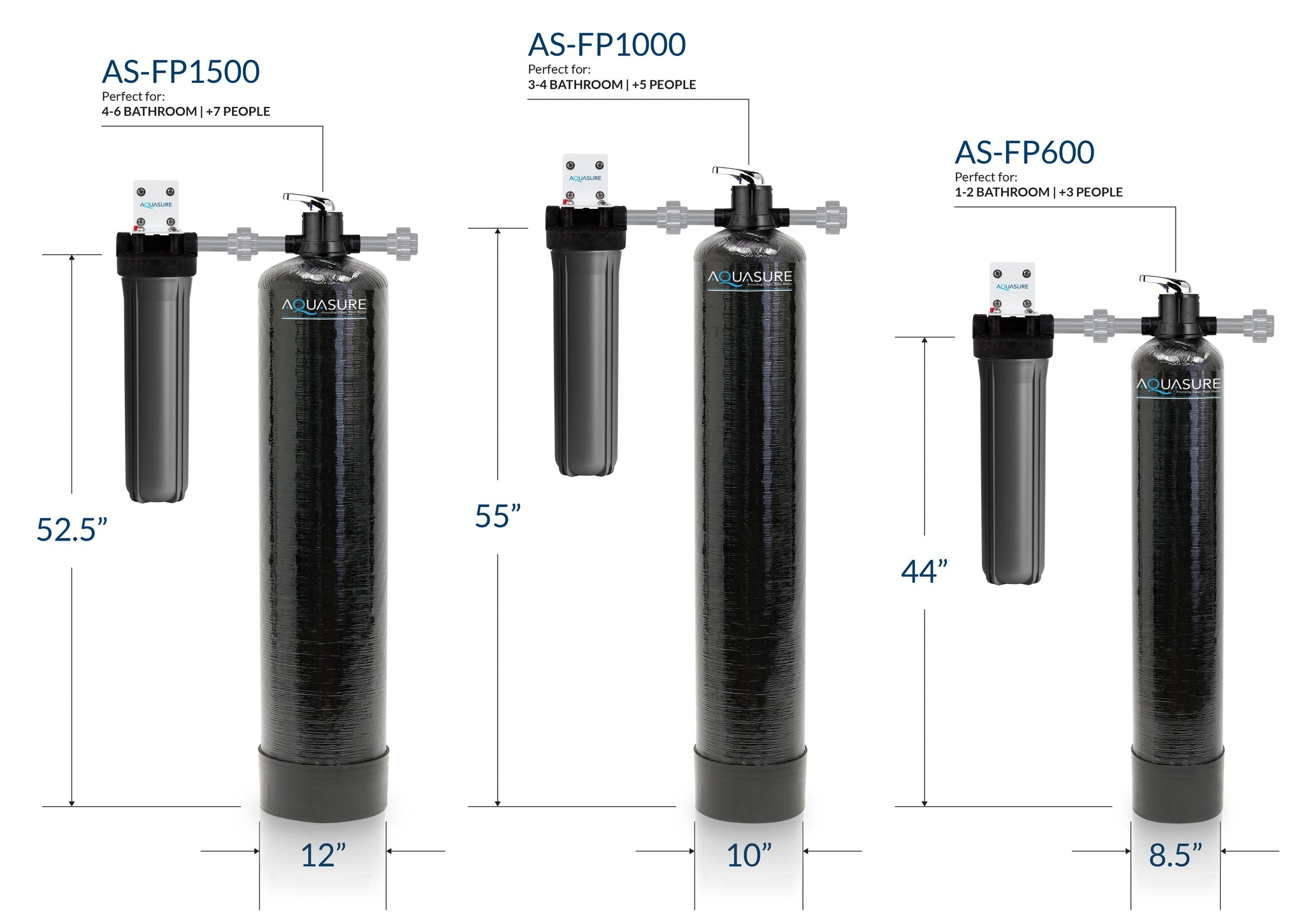 • Designed for 3-4 bathrooms homes, up to 6 people on city, municipal or well water.