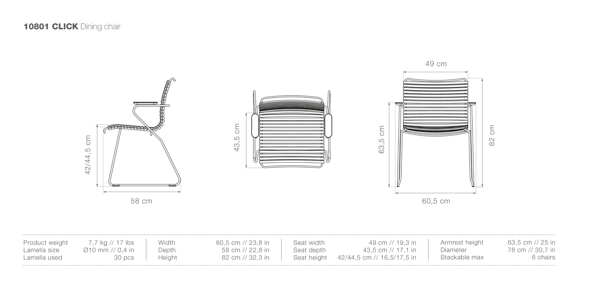 Designed by Henrik Pedersen, the Houe CLICK outdoor dining chair delivers both functionality and visual appeal. The lamellas are crafted to provide cushion-free comfort, ensuring long-lasting seating for extended outdoor gatherings. Its stackable design makes it easy to store when not in use, providing added convenience. Whether placed individually or grouped around a dining table, this chair brings a modern aesthetic to your outdoor space, making it ideal for patios, terraces, or balconies. It’s an excellent choice for those seeking durability and style.