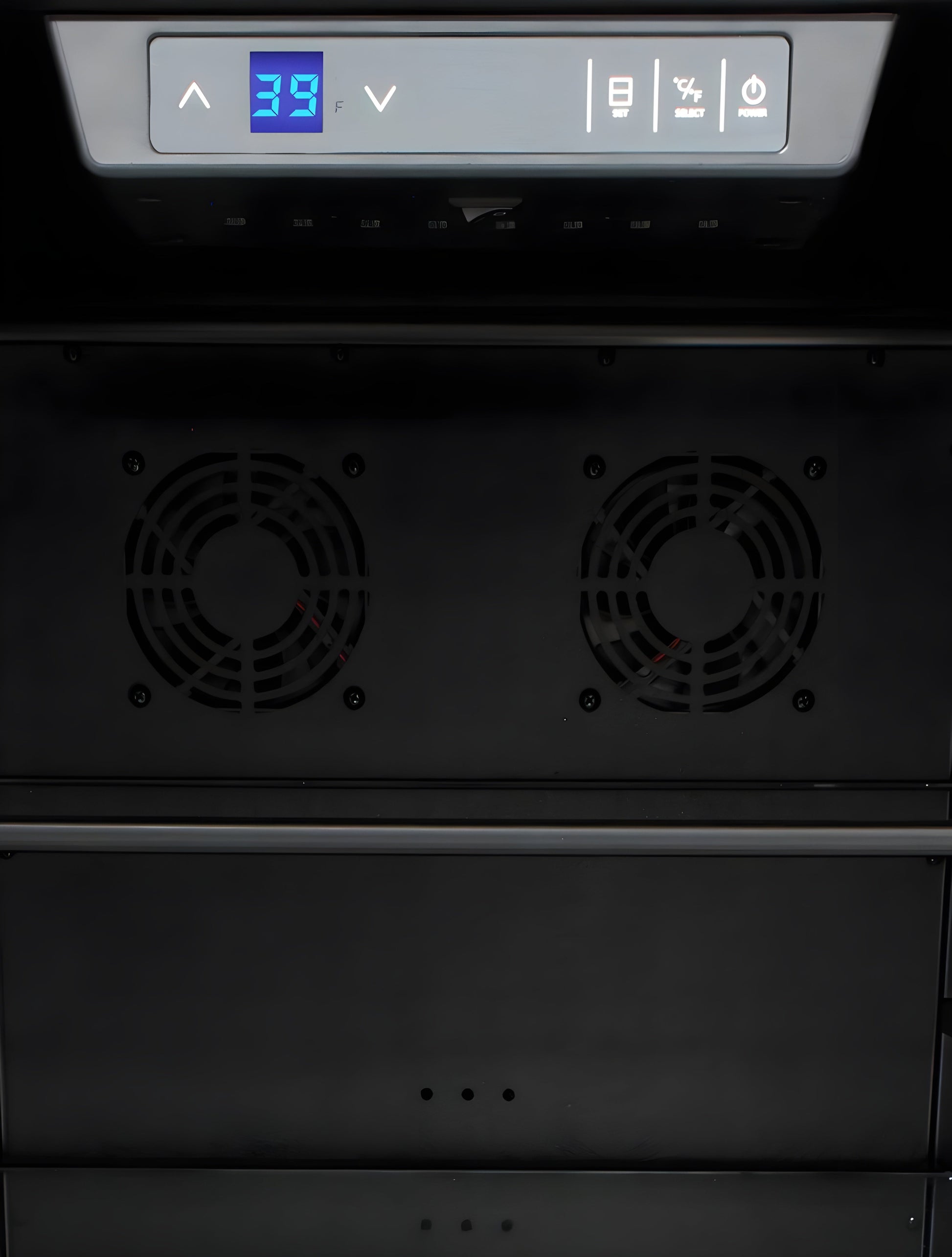 The Connoisseur Series 168 Single-Zone Beverage Cooler is an essential for those who love to entertain. Equipped with front exhaust, this beverage cooler is designed to fit seamlessly in existing cabinetry. The easy to use digital control panel makes adjusting the temperature simple while providing peace of mind that your beverages are always ready to be enjoyed. The blue LED lighting illuminates the cooler’s contents behind a seamless stainless steel door, making this beverage cooler an aesthetically pleasing addition to any room. Sliding tempered glass shelves holds approximately 430 12 oz. cans. Beautiful and functional, this beverage cooler is sure to be the centerpiece of get-together for years to come.