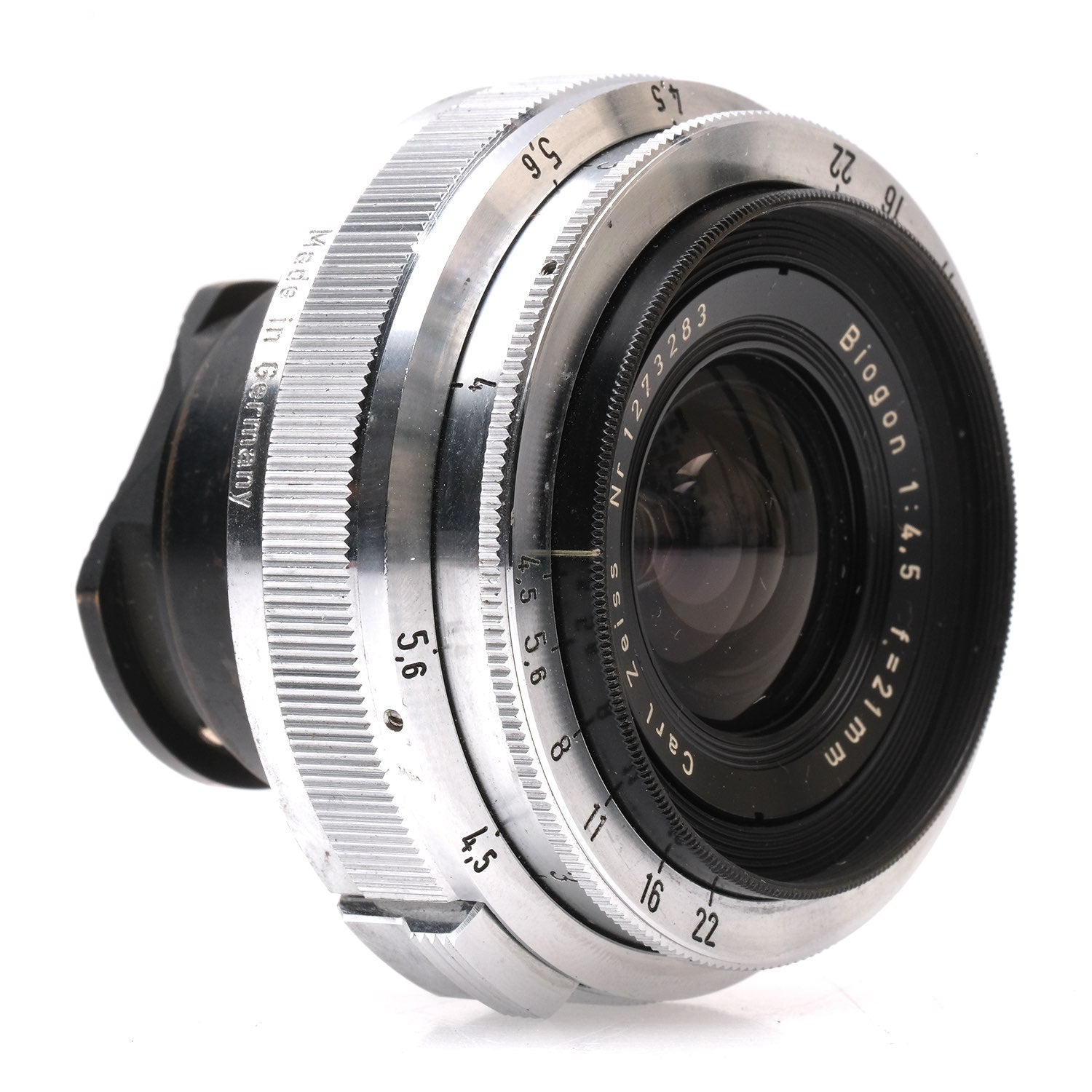 A: The Contax 21mm f/4.5 Biogon is an ultra-wide-angle lens designed by Carl Zeiss for Contax rangefinder cameras. It is known for its exceptional optical quality, minimal distortion, and superb edge-to-edge sharpness, making it highly desirable for architectural, landscape, and documentary photography.