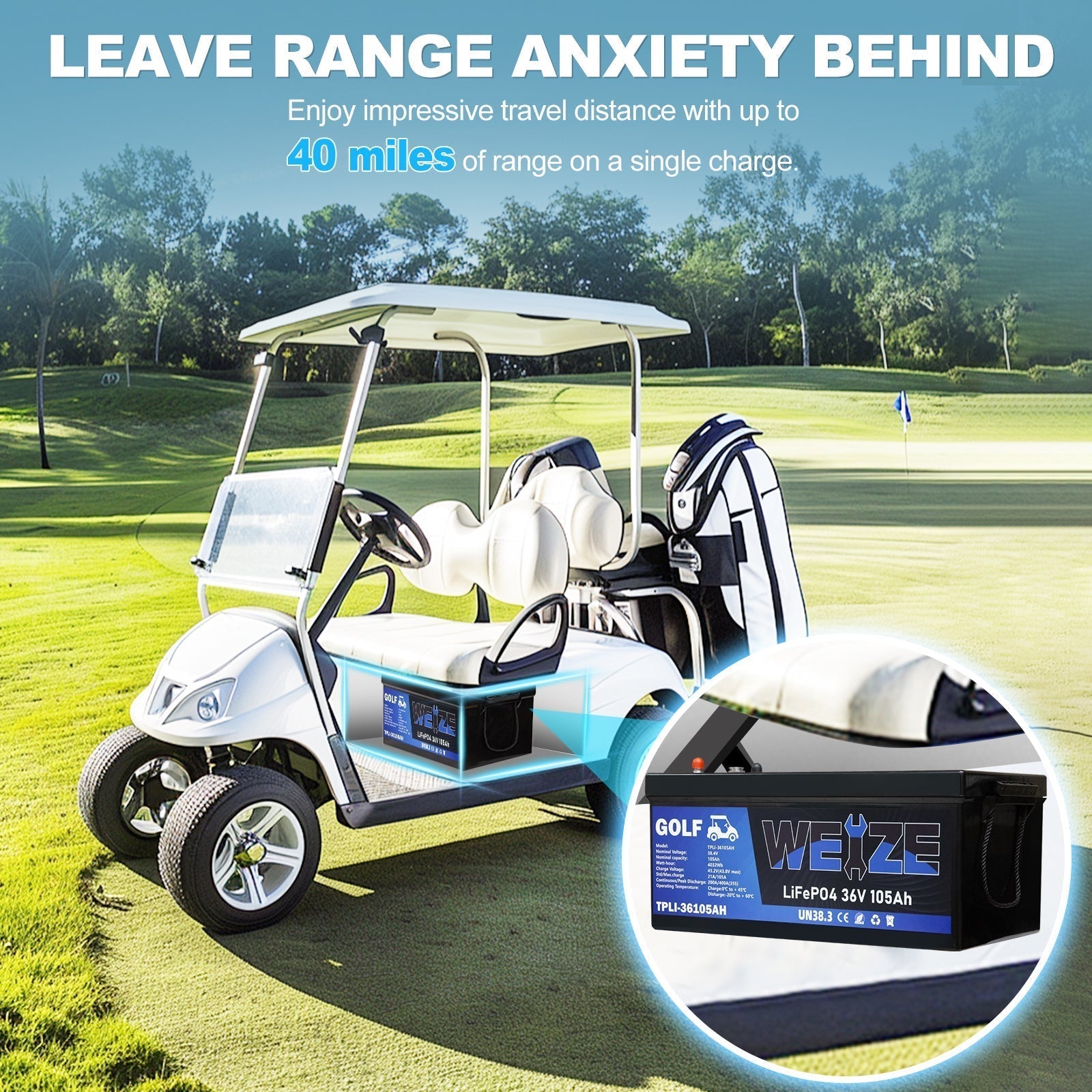 Q: What is the WEIZE 38.4V 105Ah LiFePO4 Golf Cart Battery?