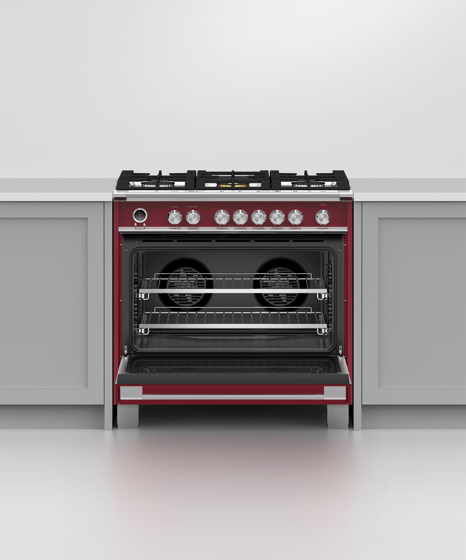 Get the best of both worlds with dual fuel. A gas cooktop is paired with a large, nine function convection oven.(BR)Finish Red