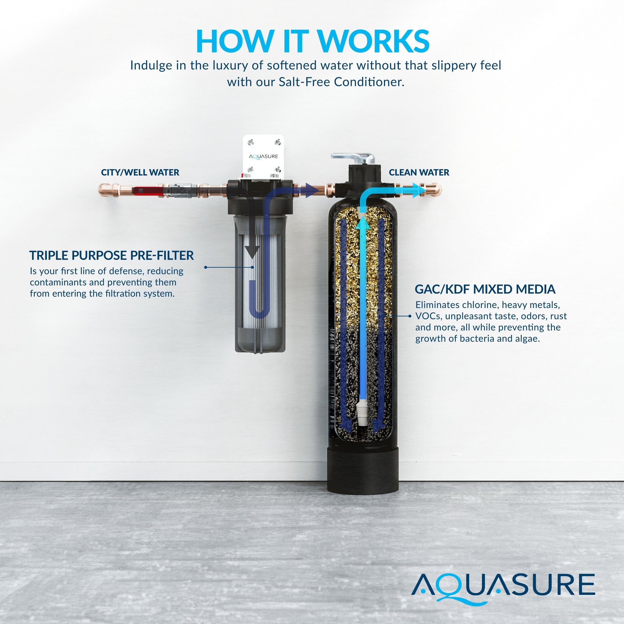 • Designed for 1-3 bathrooms homes, up to 4 people on city, municipal or well water.