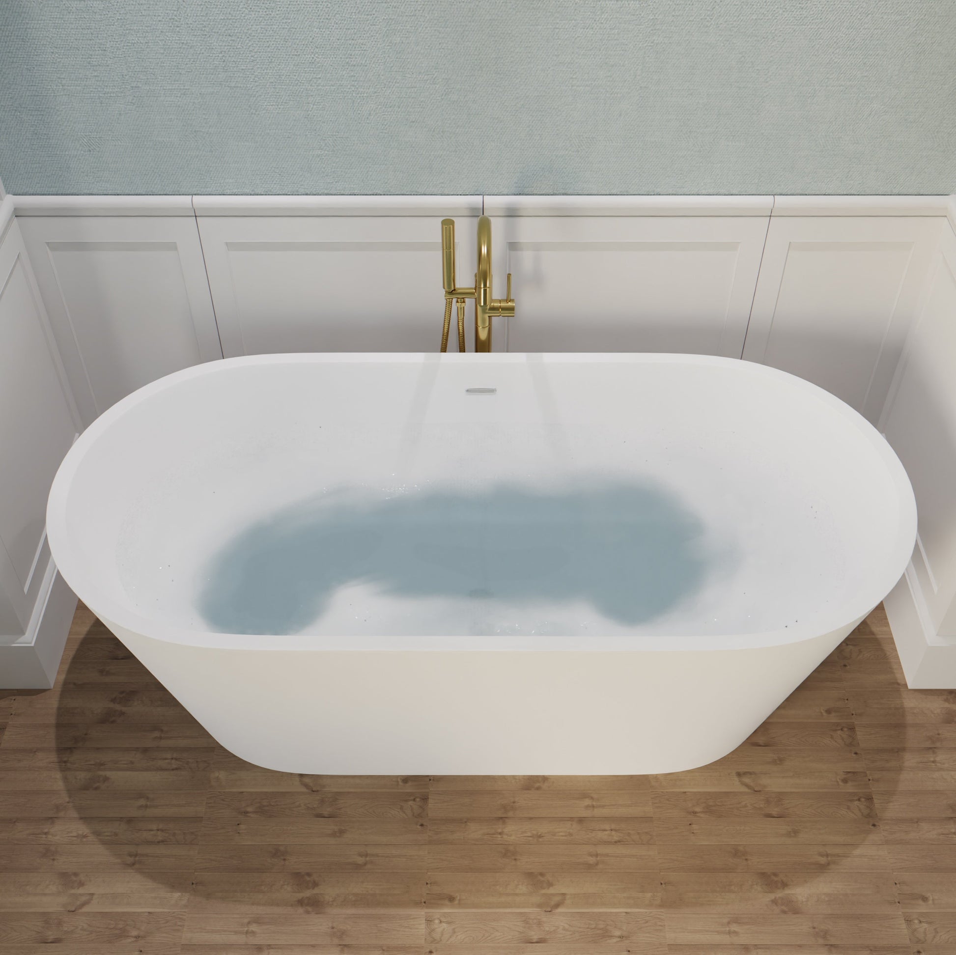 Q: What is the Anzzi Kosima 5.6 ft. Solid Surface Center Drain Freestanding Bathtub (FT-AZ8414)?