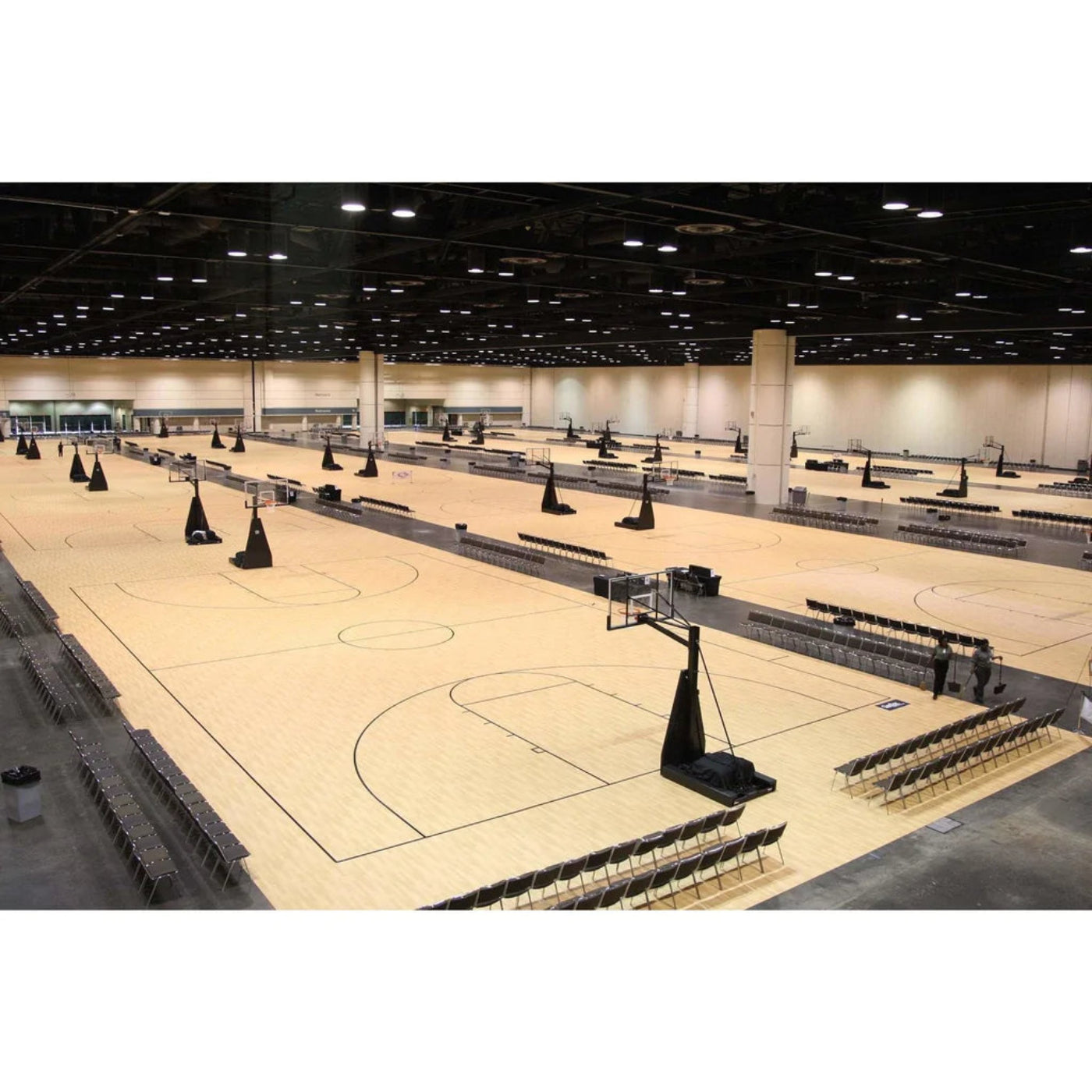 A: Yes, the Hoopmaster R54 features a wheeled base for easy transport and repositioning within an indoor facility.