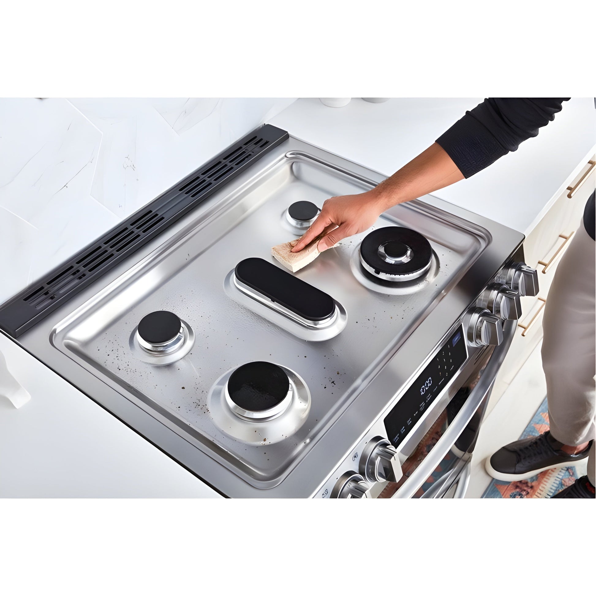 Clean the Cooktop Regularly – Wipe burners, grates, and the cooktop surface after each use to prevent grease and food buildup.