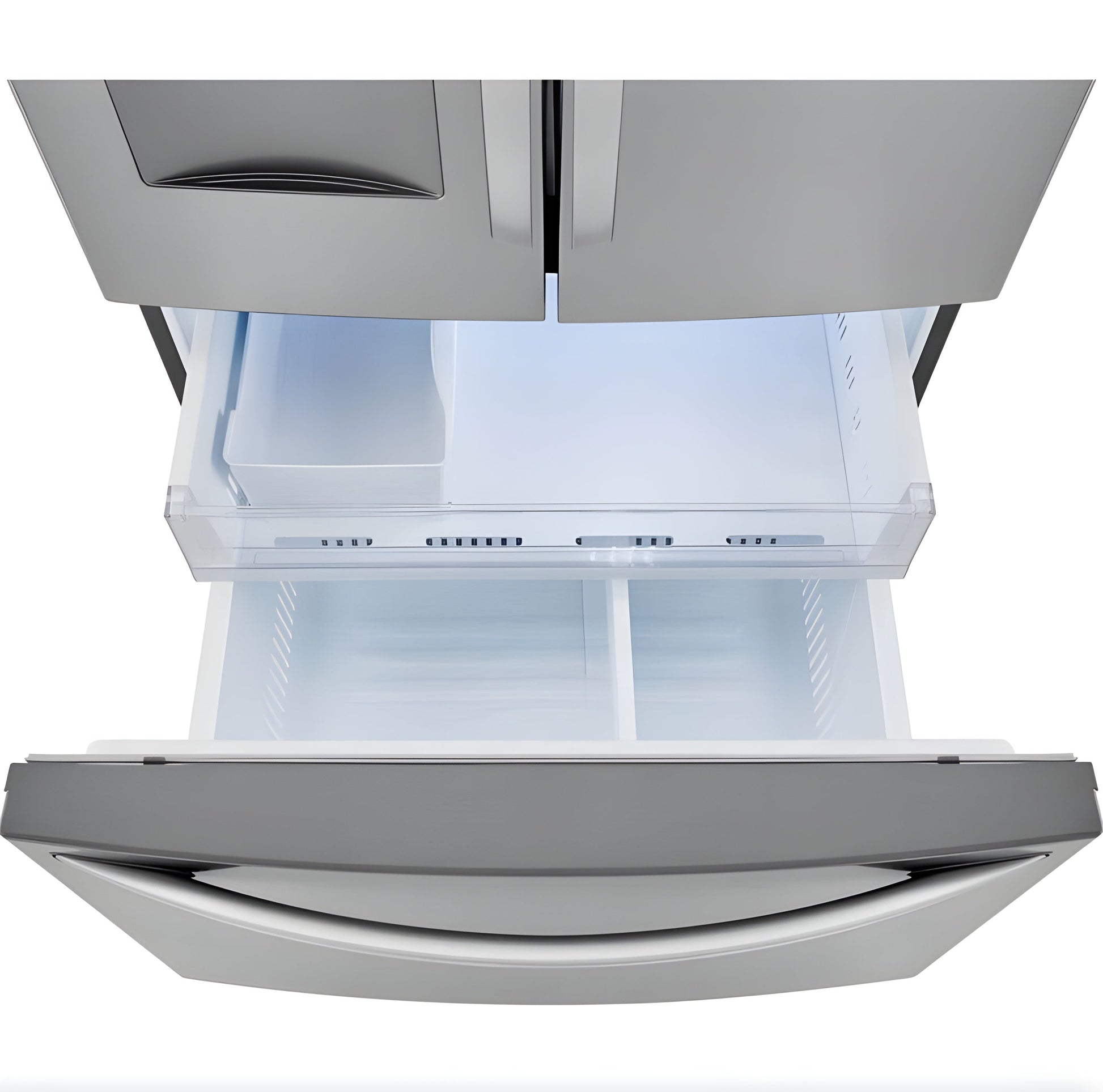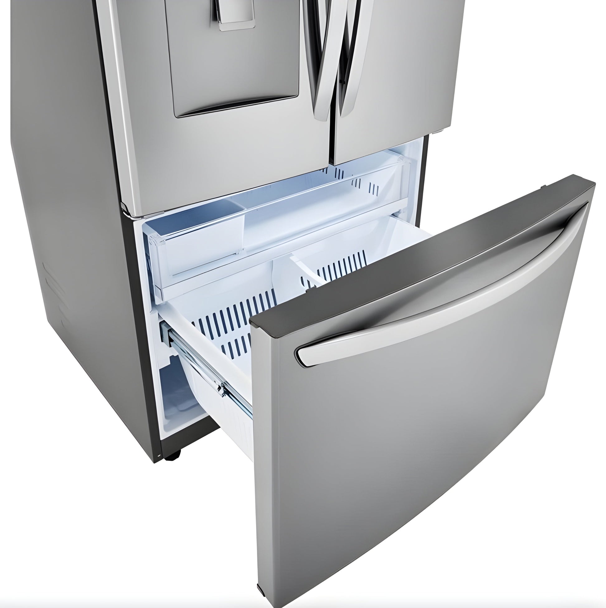 With no ice maker to take up room, take advantage of cavernous space – 29 cubic feet to be exact. This LG French Door refrigerator’s wide-open shelves keep all your favorites stored and organized. Skip the water pitcher settings inside your fridge and reclaim that space because the dispenser holds a half gallon (8 glasses) of cool, filtered water at the ready – our largest chilled water capacity yet.