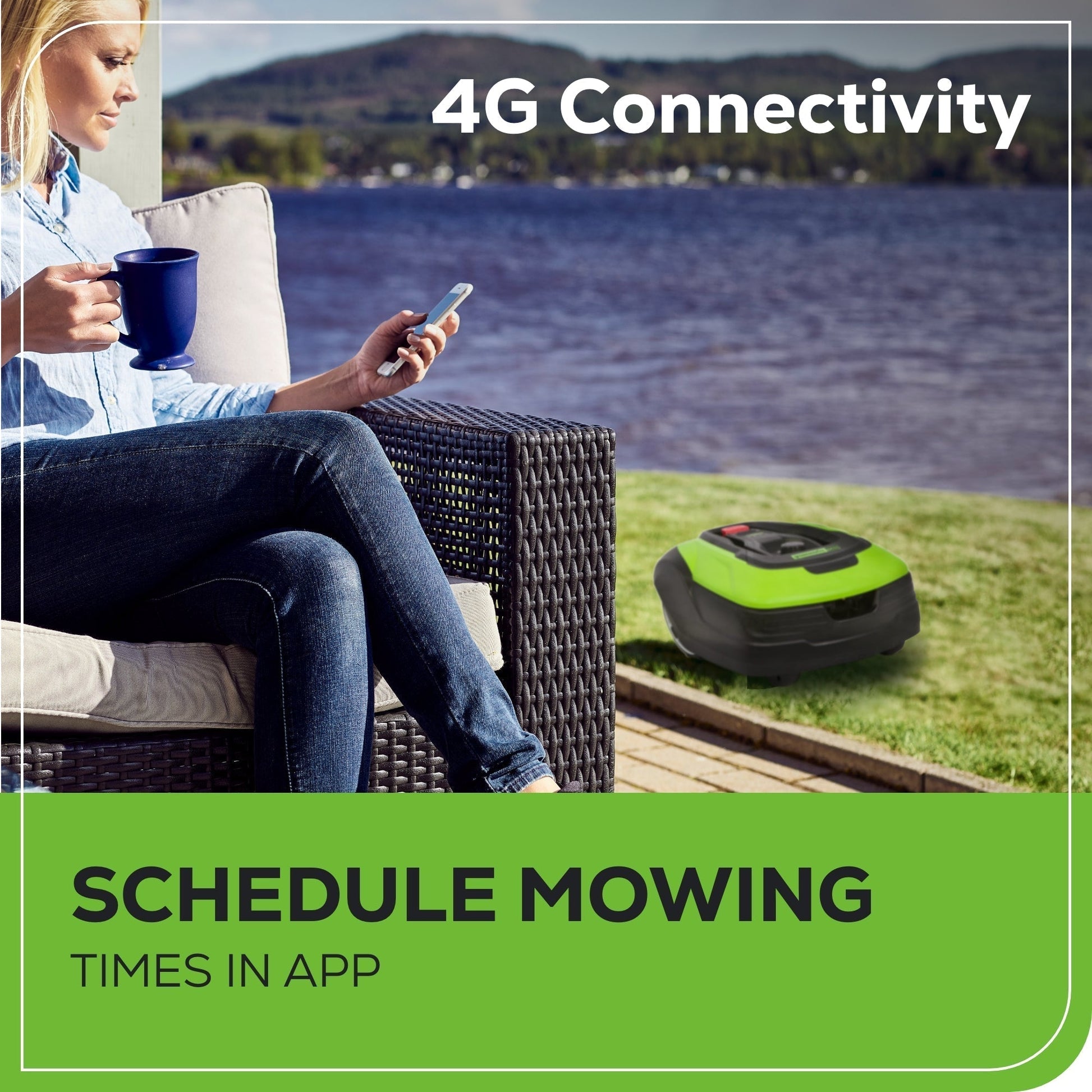 A: Yes, it can be controlled and scheduled via the Greenworks app, allowing you to customize mowing times and monitor its progress remotely.