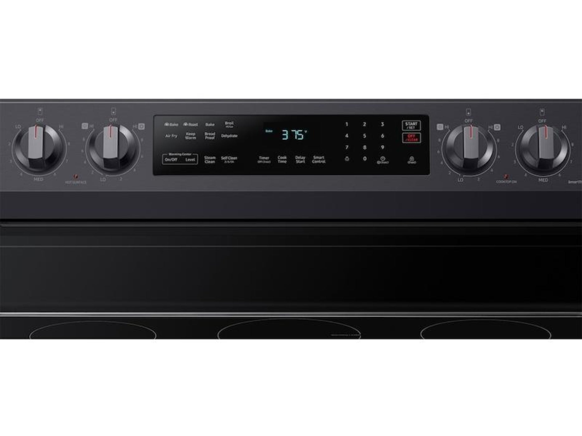 A: This 6.3 cu. ft. smart freestanding electric range features No-Preheat Air Fry, Fan Convection, a powerful Rapid Boilâ„¢ burner, Wi-Fi connectivity, and a fingerprint-resistant Black Stainless Steel finish for a modern, stylish look.