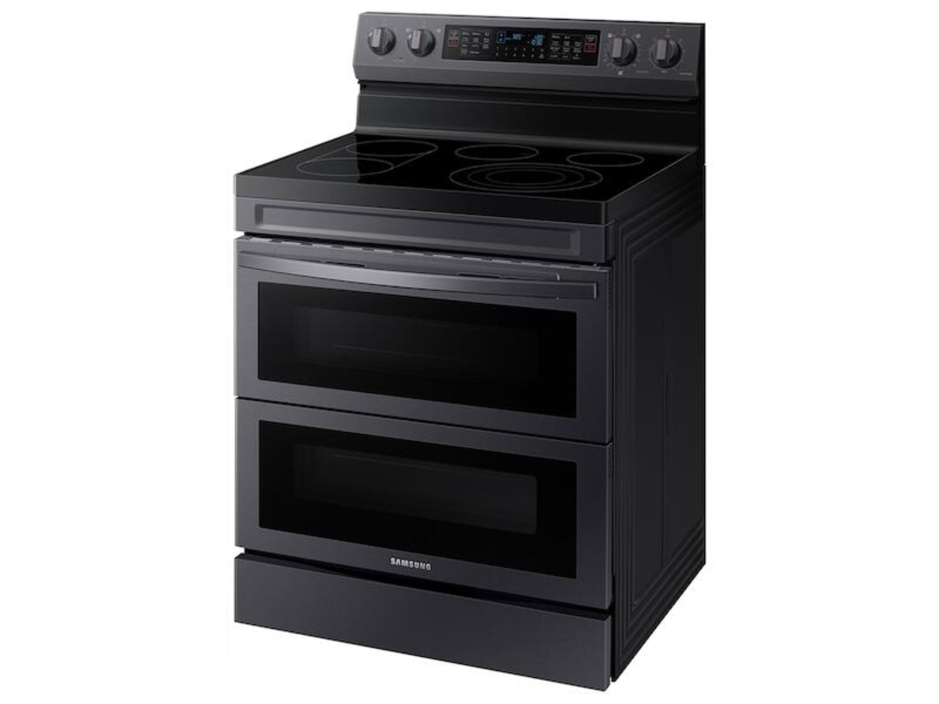 A: This 6.3 cu. ft. smart freestanding electric range features Flex Duo™ technology for independent oven temperature zones, No-Preheat Air Fry for healthier crispy meals, a built-in Griddle, and a Convection Oven for even cooking. It also supports Wi-Fi connectivity for remote control via the SmartThings app.