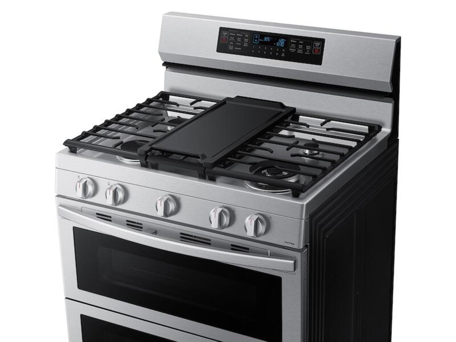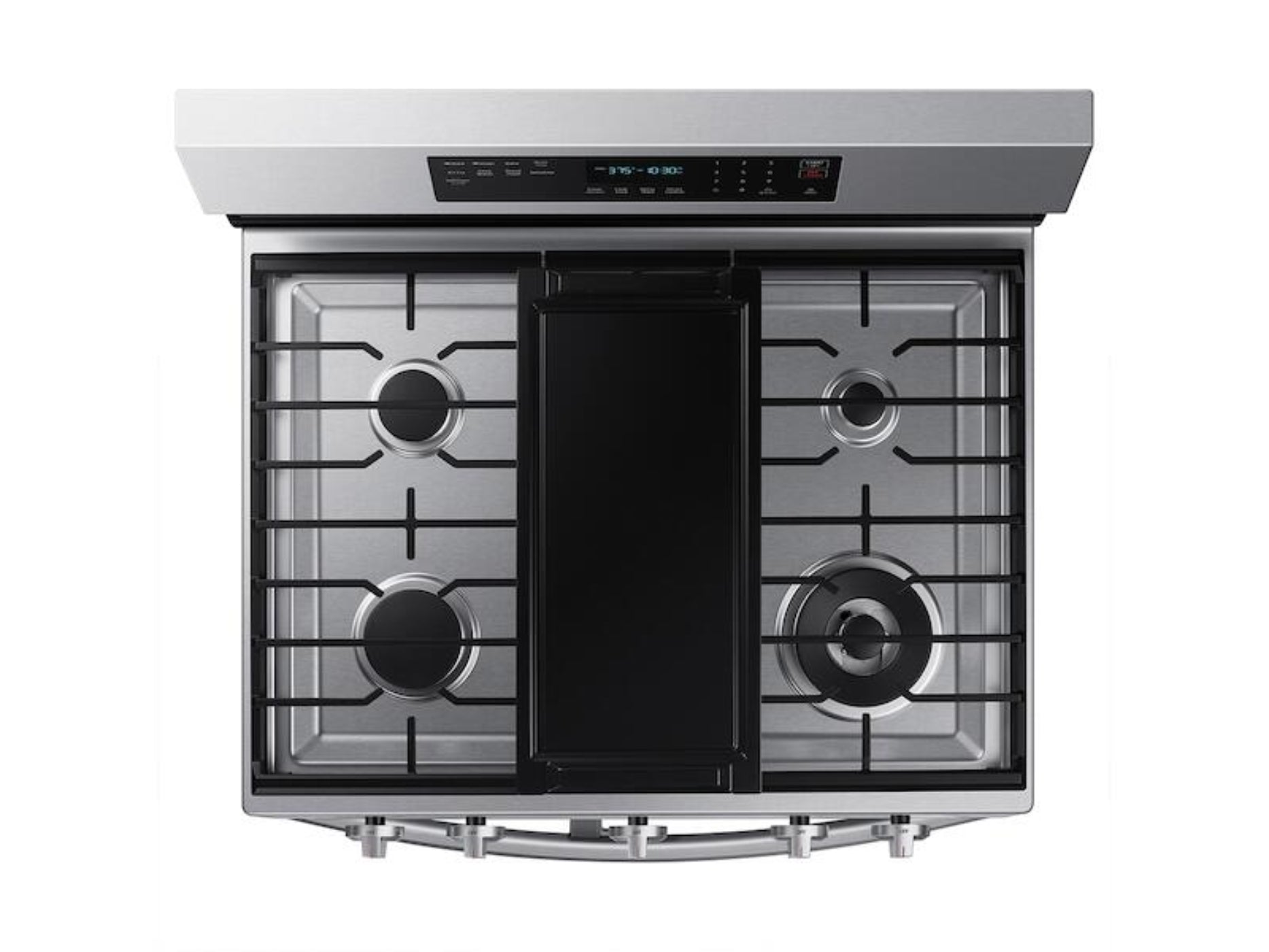 Q: What are the standout features of the Samsung NX60A6751SS Gas Range?