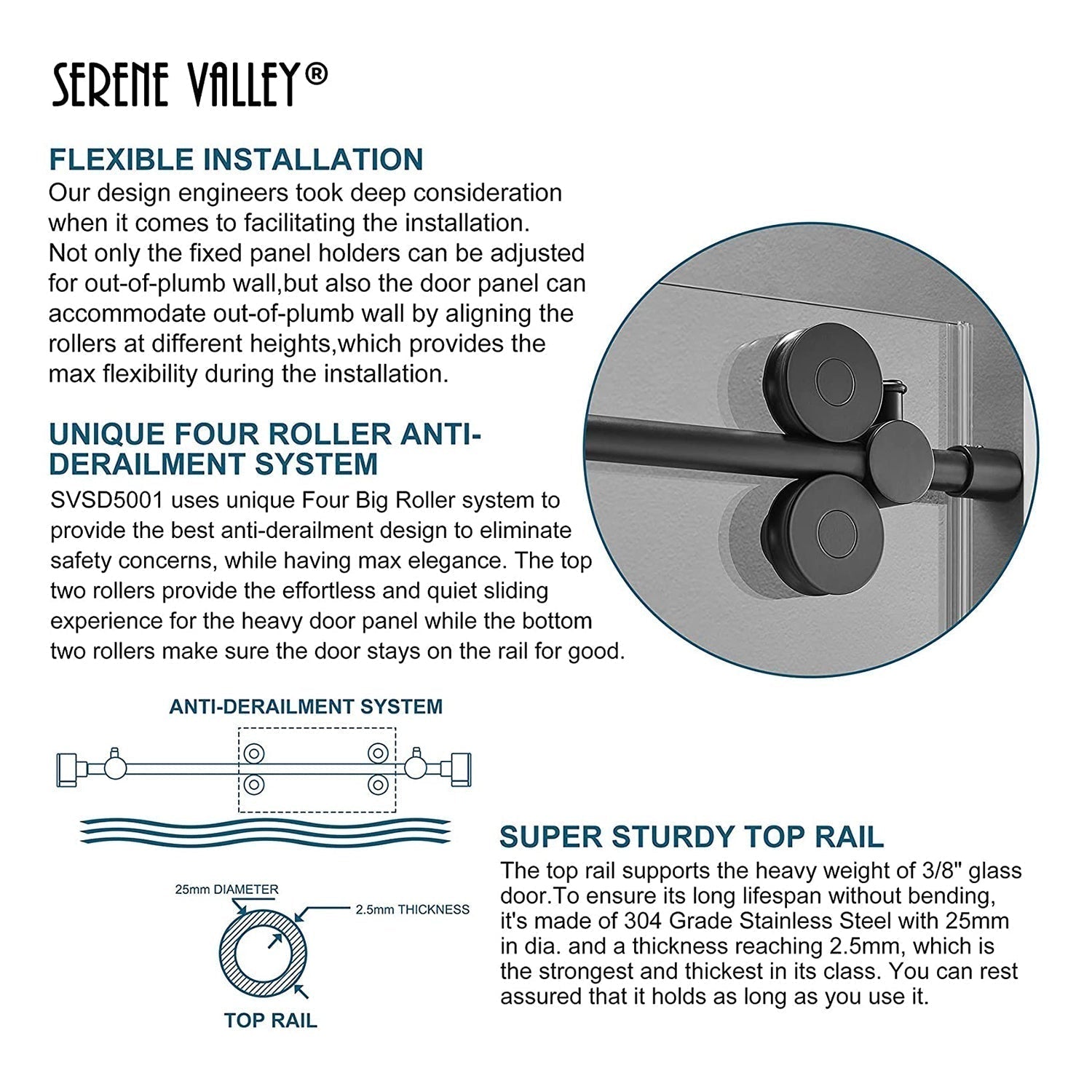 Stepping in and out of the shower can be a messy process if you don't have the right equipment. Wash up with ease with the 60 x 74 Inch Big Roller Sliding Shower Door from Serene Valley.