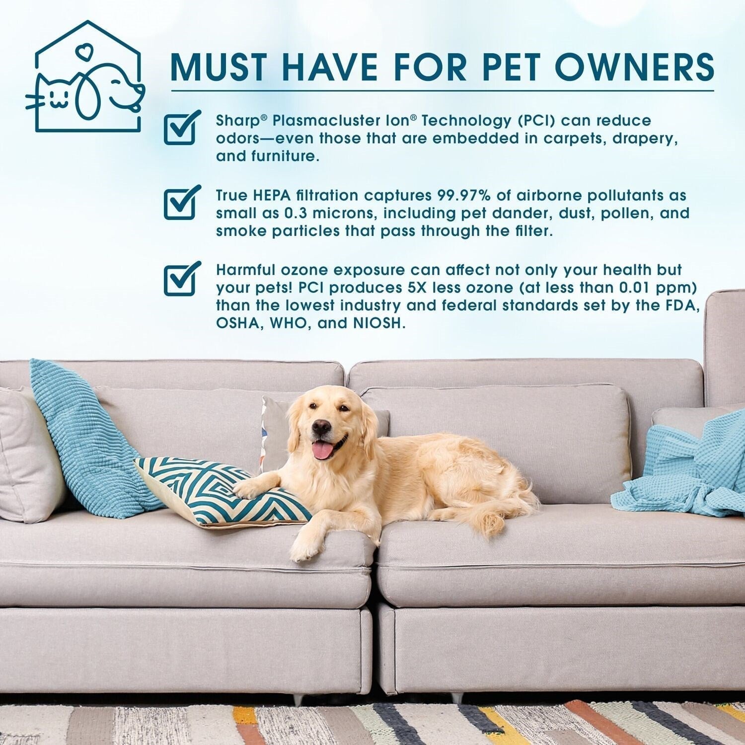 - Captures 99.97 percent of particles as small as 0.3 microns from the air that passes through it, including pollen, mold, pet dander and dust.