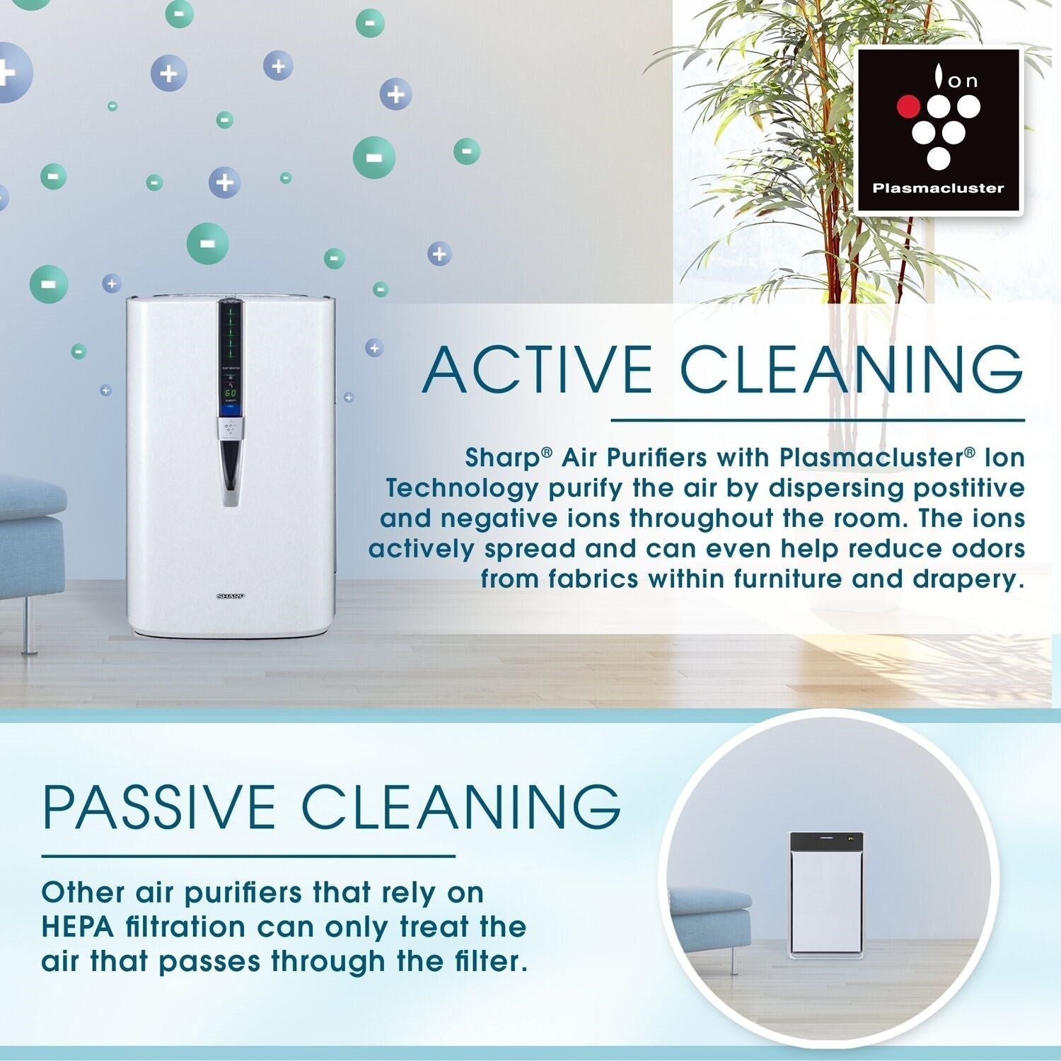 A: Plasmacluster technology releases positive and negative ions that help reduce allergens, bacteria, and odors, promoting a healthier environment.