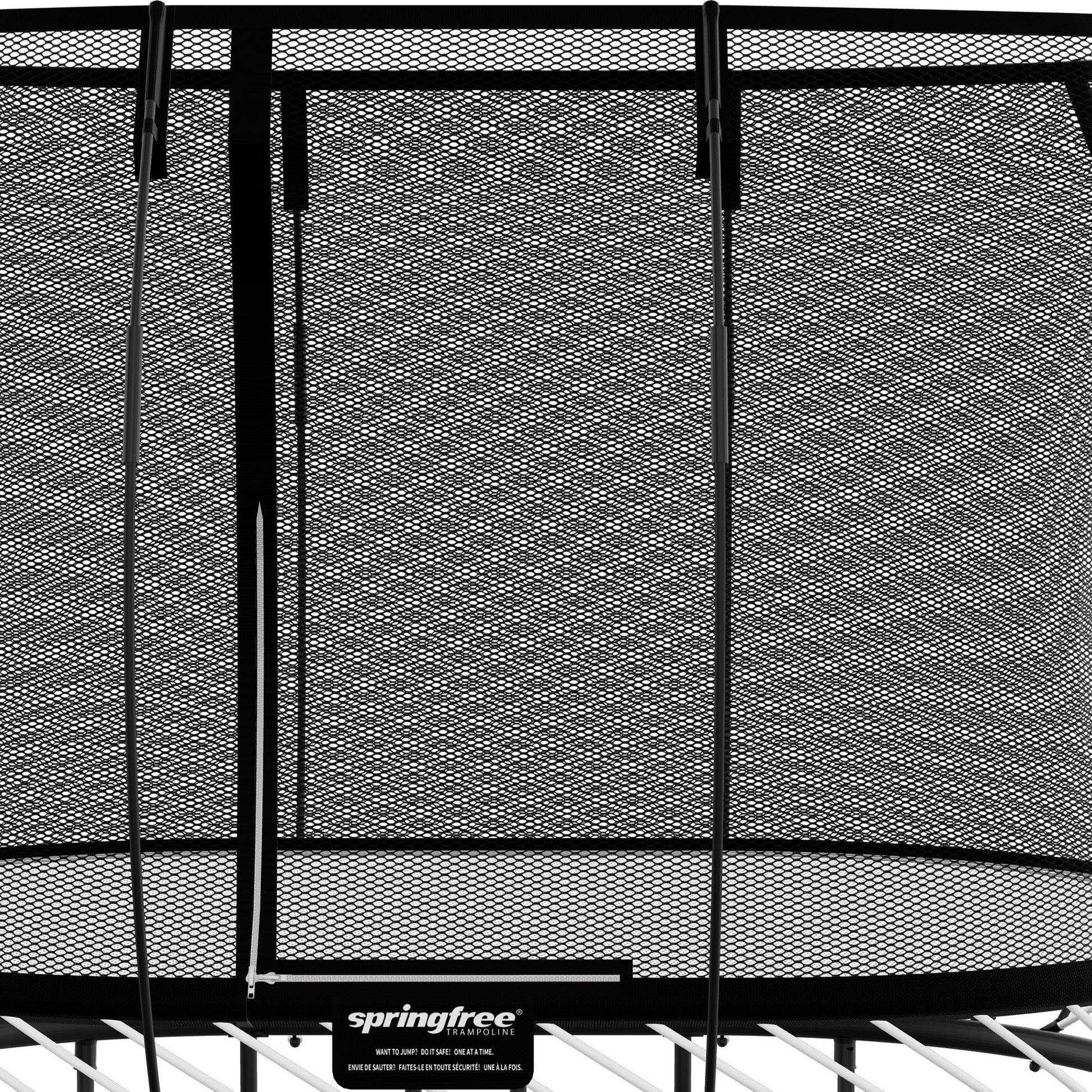 A: It eliminates metal springs and uses flexible composite rods beneath the mat, preventing hard impact injuries. The SoftEdgeβ’ mat absorbs shock, and the FlexiNetβ’ safety enclosure prevents falls.