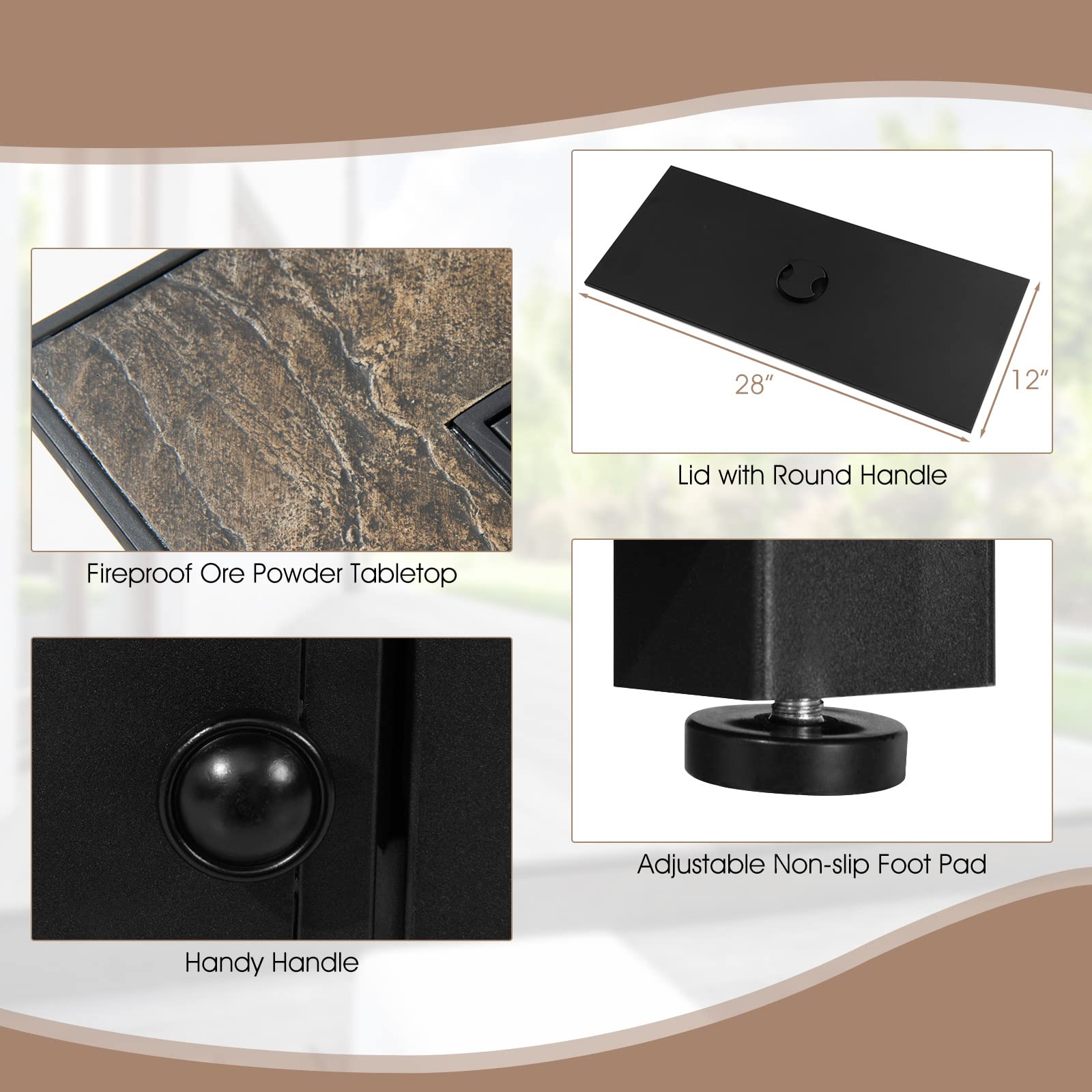 Overall Dimension of Fire Pit Table: 42"x 24"x 25"(L x W x H)