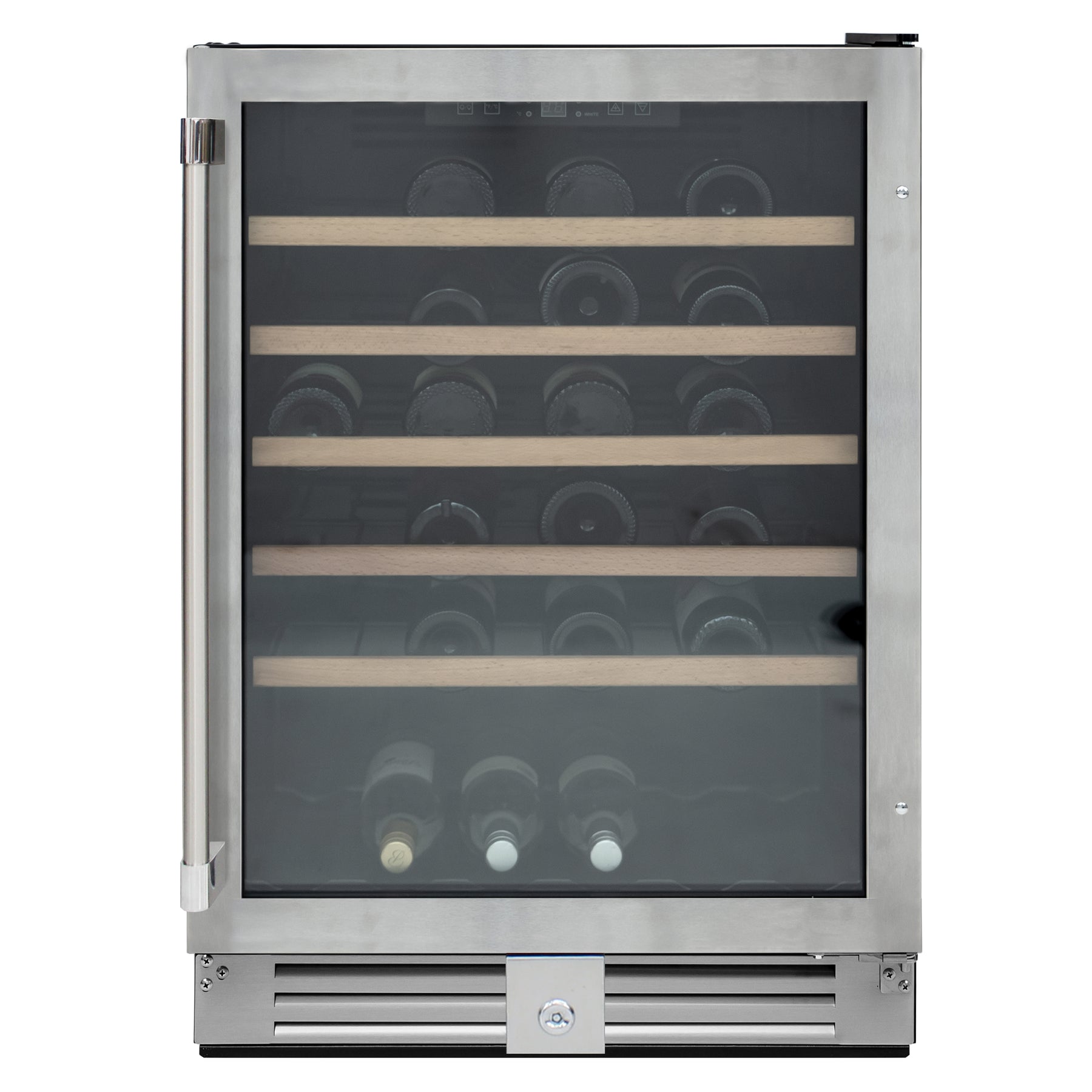 A: It’s a sleek, stainless steel wine cooler designed to store up to 51 bottles at the ideal temperature in a single zone.