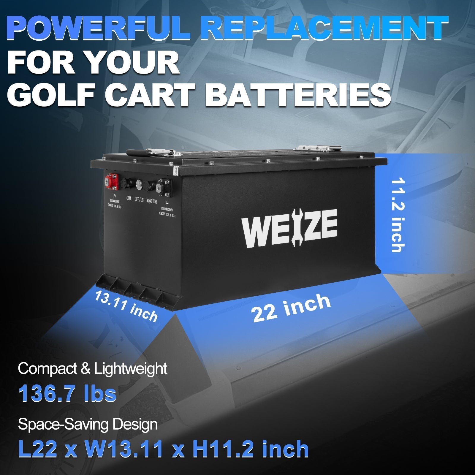 Q: What is the WEIZE 72V 105Ah LiFePO4 Golf Cart Battery?