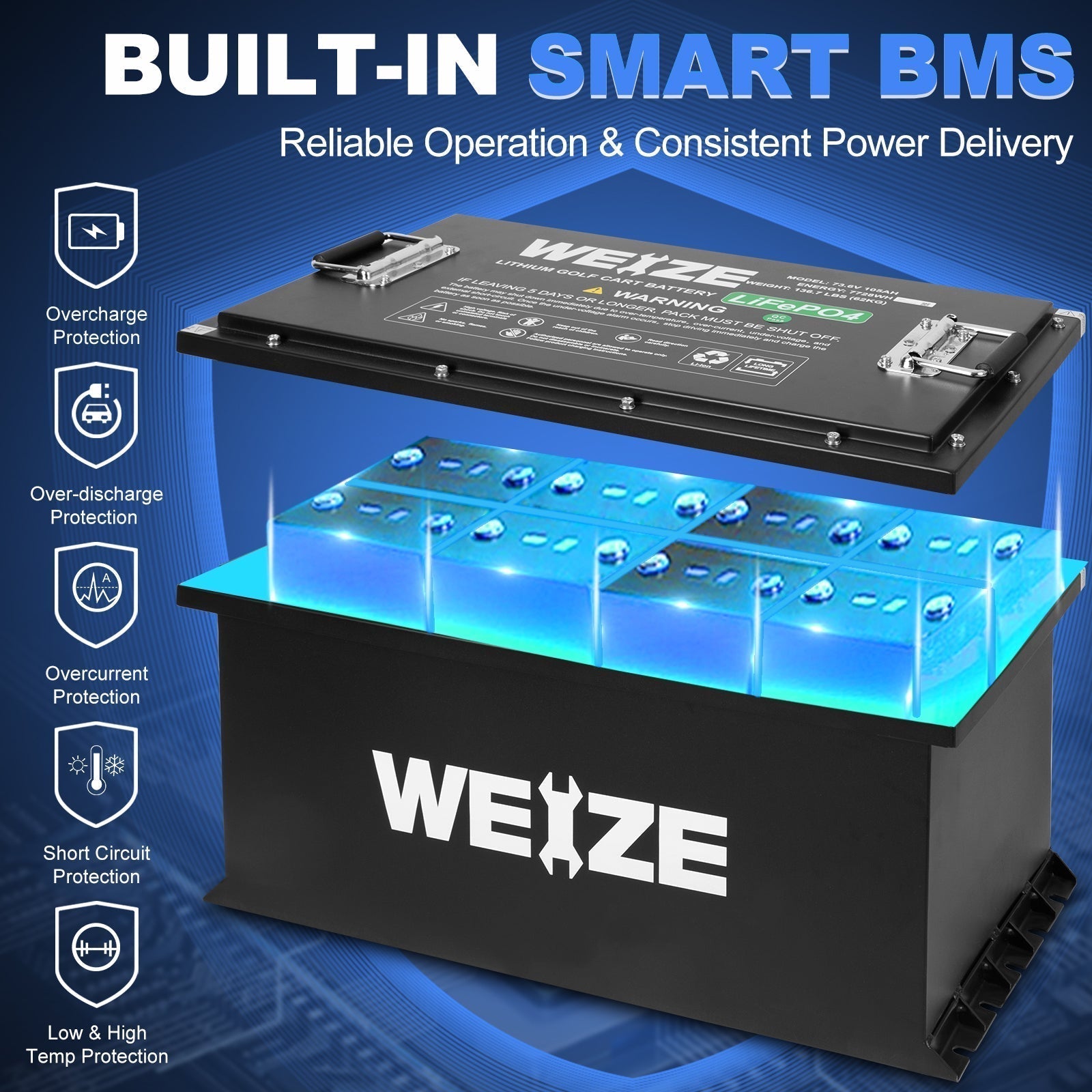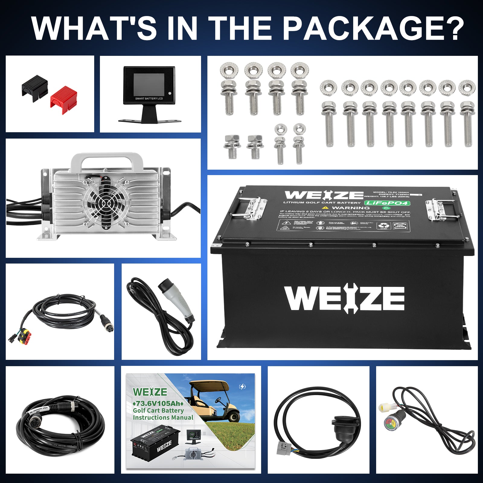 WEIZE 72V(73.6V) 105AH LiFePO4 Golf Cart Battery, 7728Wh Bluetooth Lithium Battery - Complete Kit - BAC-0115CR