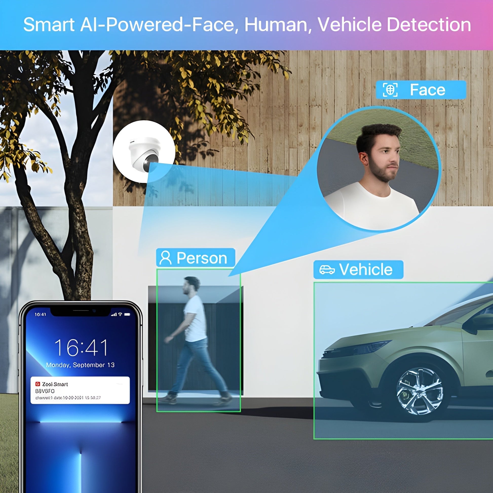 A: This system features AI technology that accurately detects and differentiates between people, vehicles, and general motion, reducing false alerts caused by environmental factors.