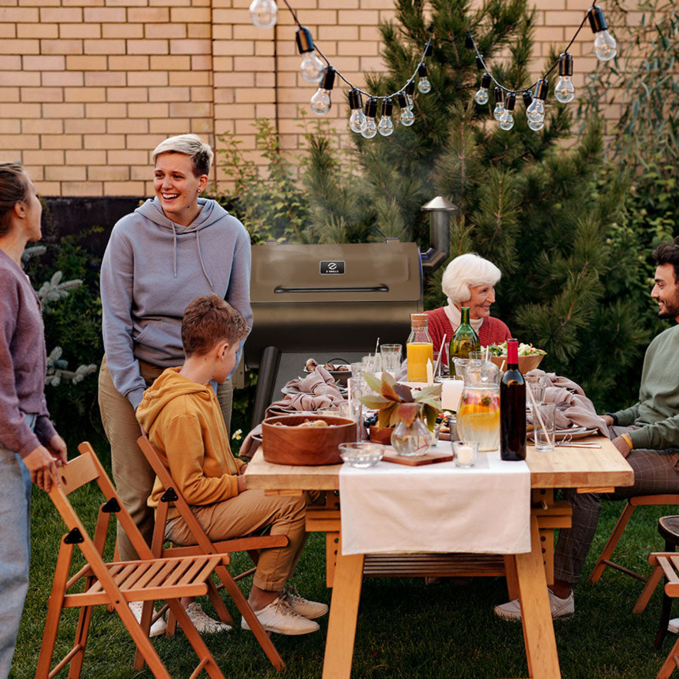 Get ready to master the art of grilling with the 7002C3E Wood Pellet Grill. This is the go-to grill for any outdoor cooking enthusiast thanks to its unmatched precision, reliable performance, and ease of use. With 2 all-terrain wheels and 2 locking caster wheels, this durable grilling machine makes it easy to transport from storage to your backyard - perfect for the neighborhood block party or any time that you need to feed a crowd.
